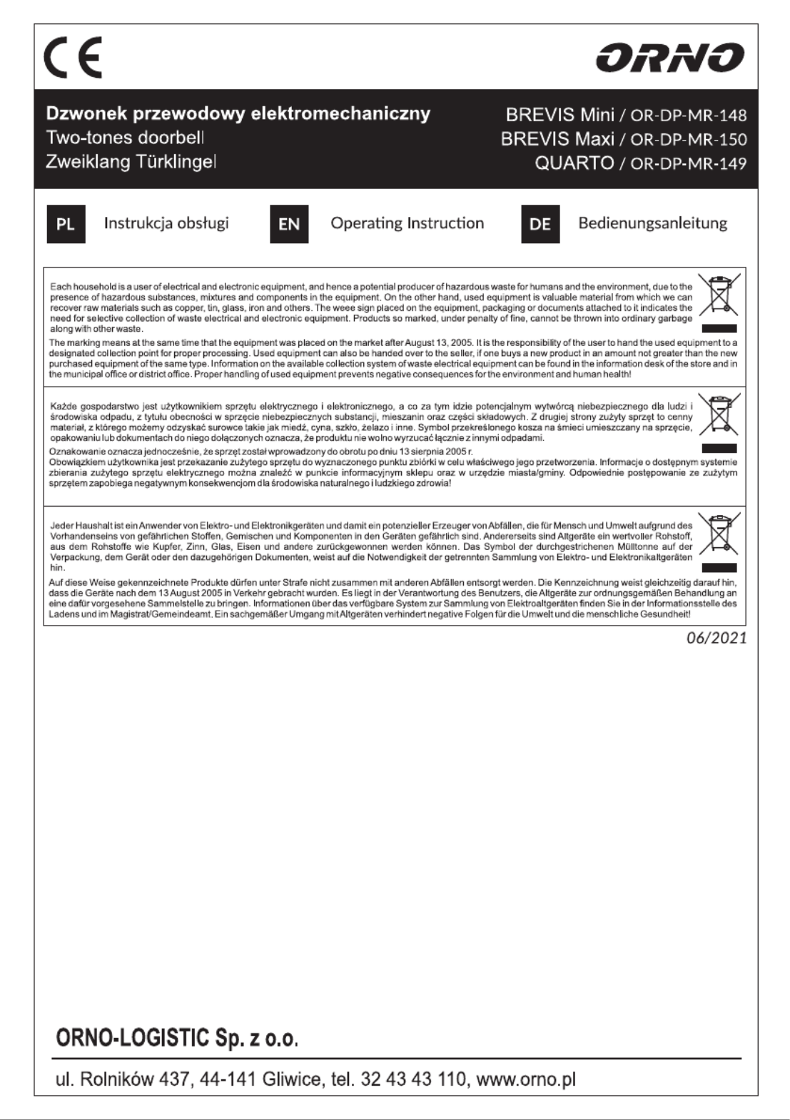 Her er ORNO OR-DP-MR-148 (Dørklokke) brugervejledning. 5 sider på sprog Engelsk med en vægt på 0.6 Mb. Hvis du ikke kan finde svar på dit problem Spørg vores community.