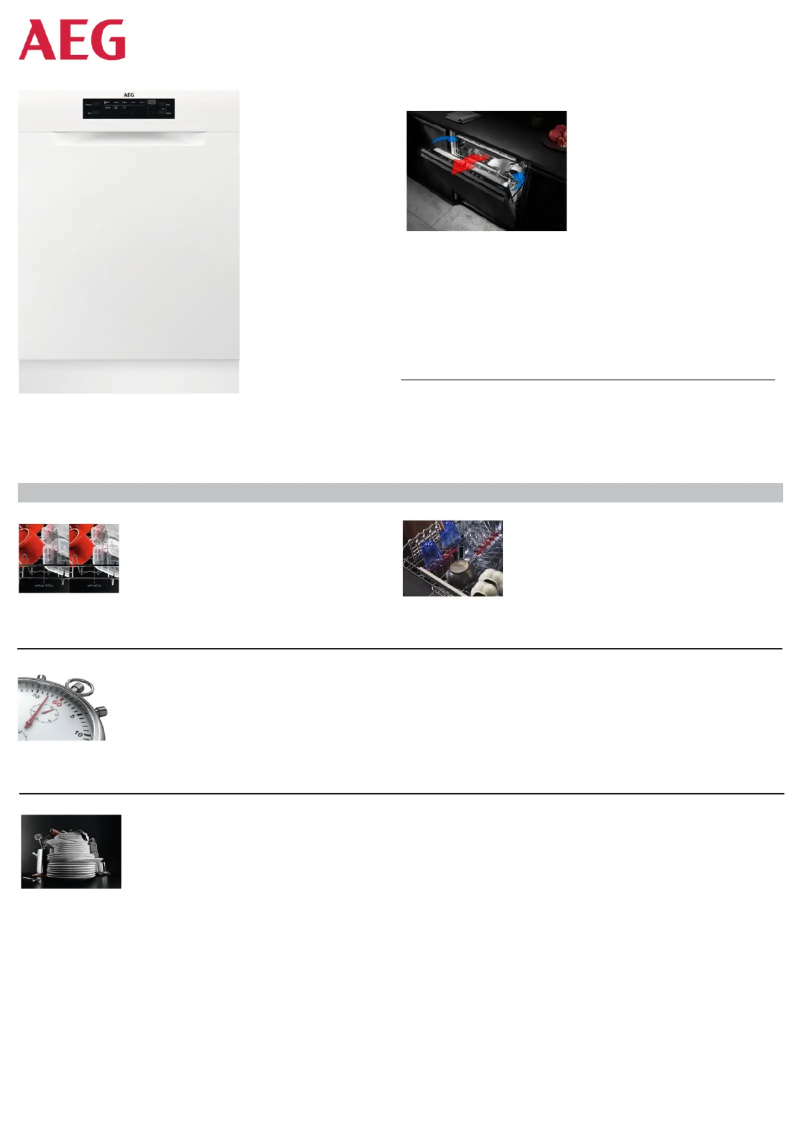 • Underkurv: 2 rk. nedfældelige tallerkenstativer, Håndtag i plast