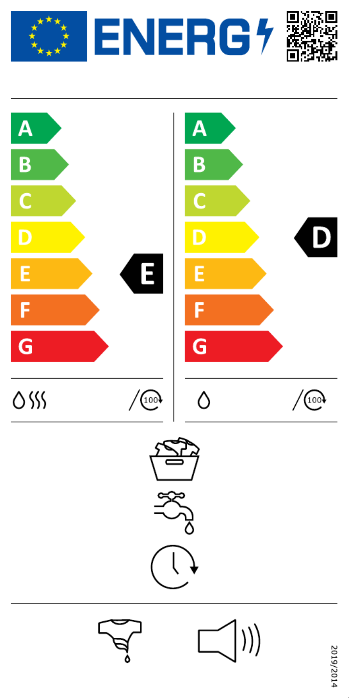 | Energieffektivitetsklasse (vask og tørring): | E |