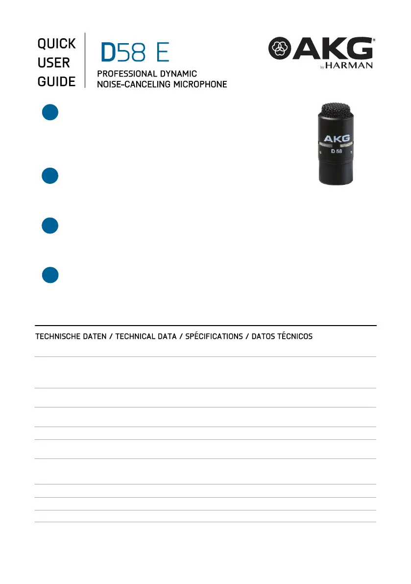 Her er AKG D58 E (Mikrofon) brugervejledning. 2 sider på sprog med en vægt på 423,263.0 Mb. Hvis du ikke kan finde svar på dit problem Spørg vores community.