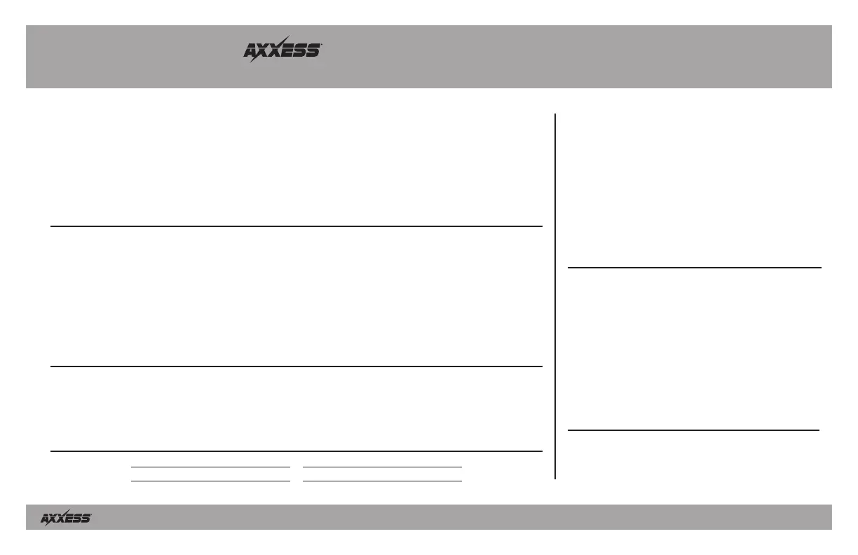 Her er Axxess AXGM-09 (Ikke kategoriseret) brugervejledning. 8 sider på sprog med en vægt på 909,384.0 Mb. Hvis du ikke kan finde svar på dit problem Spørg vores community.