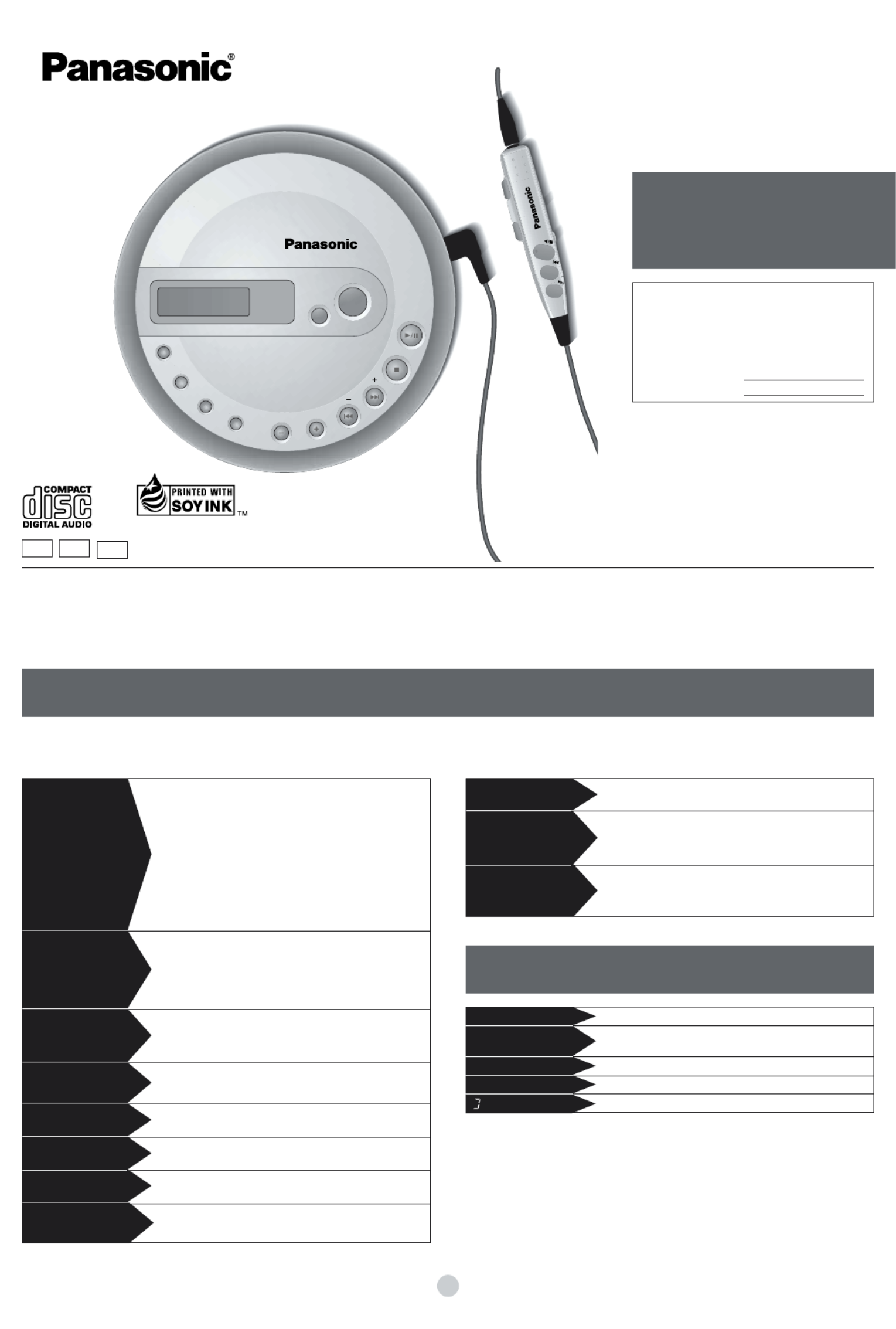 In the U.S.A., contact the Panasonic Customer Call Center at 1-800-211-7262, or e-mail consumerproducts@panasonic.com, or web site (http://www.panasonic.com).
