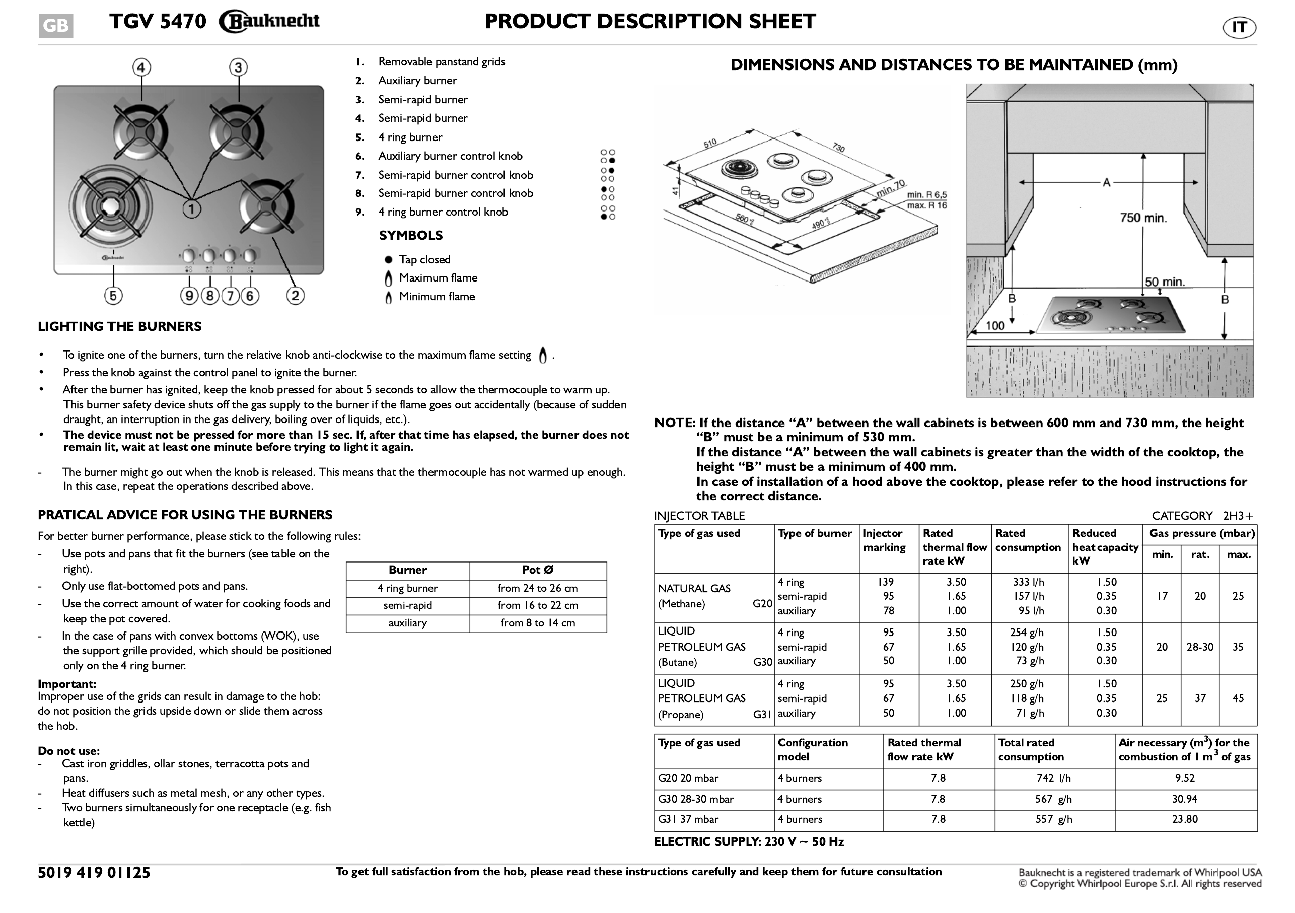 Her er Bauknecht TGV 5470 SW (Komfur) brugervejledning. 8 sider på sprog Engelsk med en vægt på 0.9 Mb. Hvis du ikke kan finde svar på dit problem Spørg vores community.
