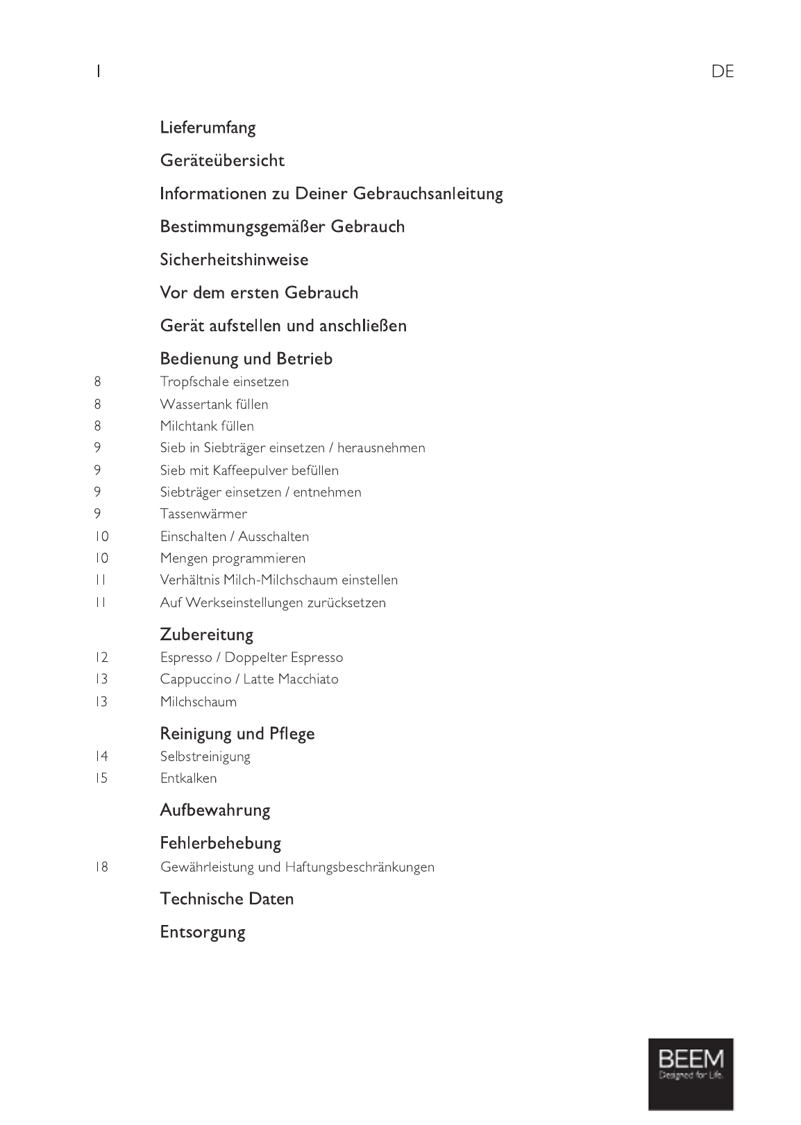 BEEM Espresso Classico II Brugsanvisning
