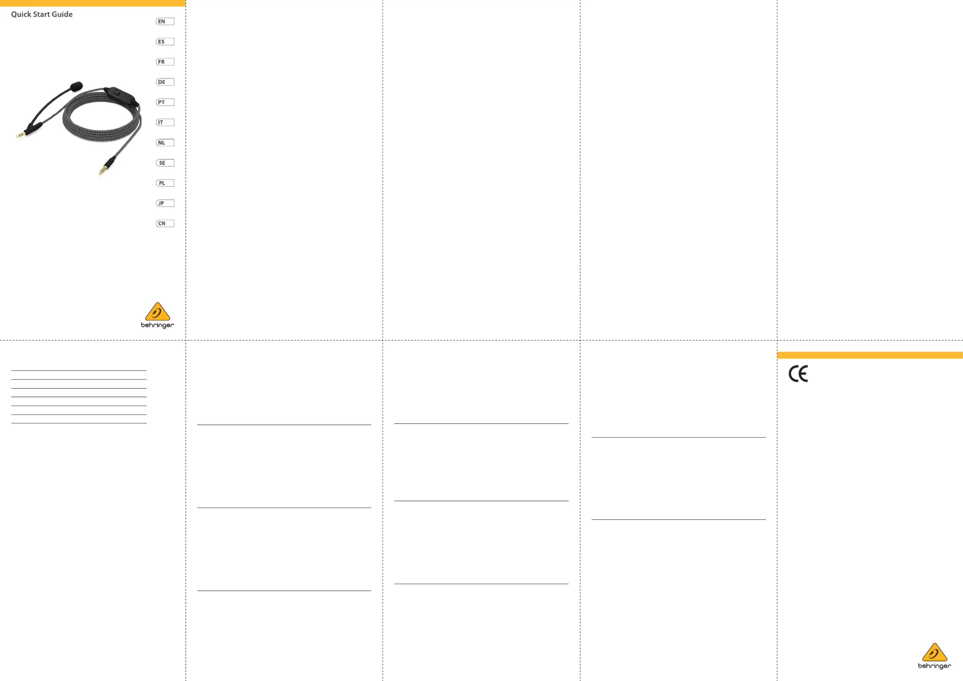 Her er Behringer BC12 (Mikrofon) brugervejledning. 1 sider på sprog med en vægt på 766,396.0 Mb. Hvis du ikke kan finde svar på dit problem Spørg vores community.