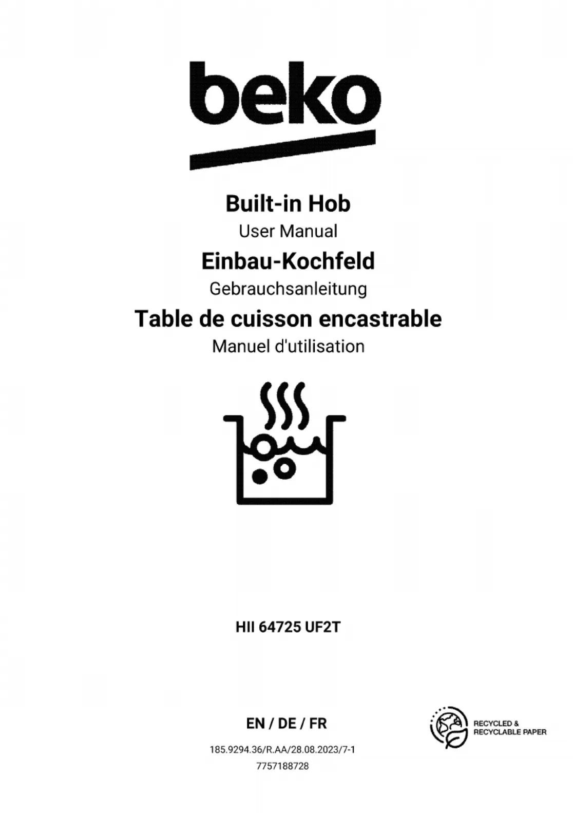 Her er BEKO HII 64725 UF2T (Ikke kategoriseret) brugervejledning. 100 sider på sprog med en vægt på 14,858,549.0 Mb. Hvis du ikke kan finde svar på dit problem Spørg vores community.