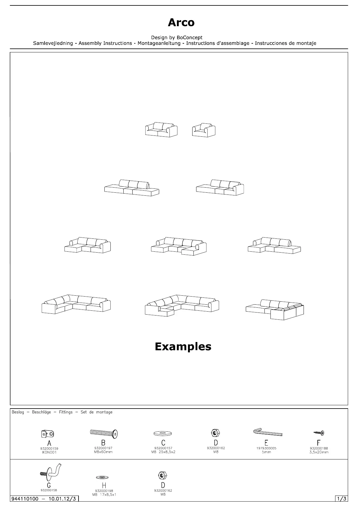 BoConcept Arco Brugsanvisning