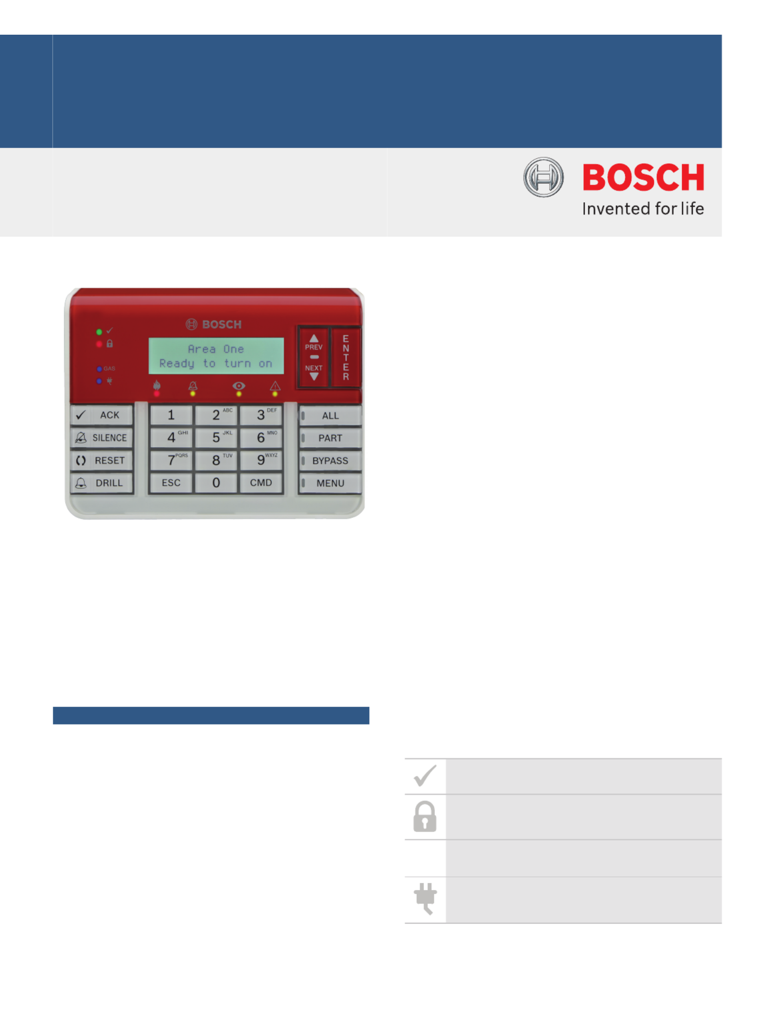 Intrusion Alarm Systems | B925F Fire and intrusion keypad, SDI2