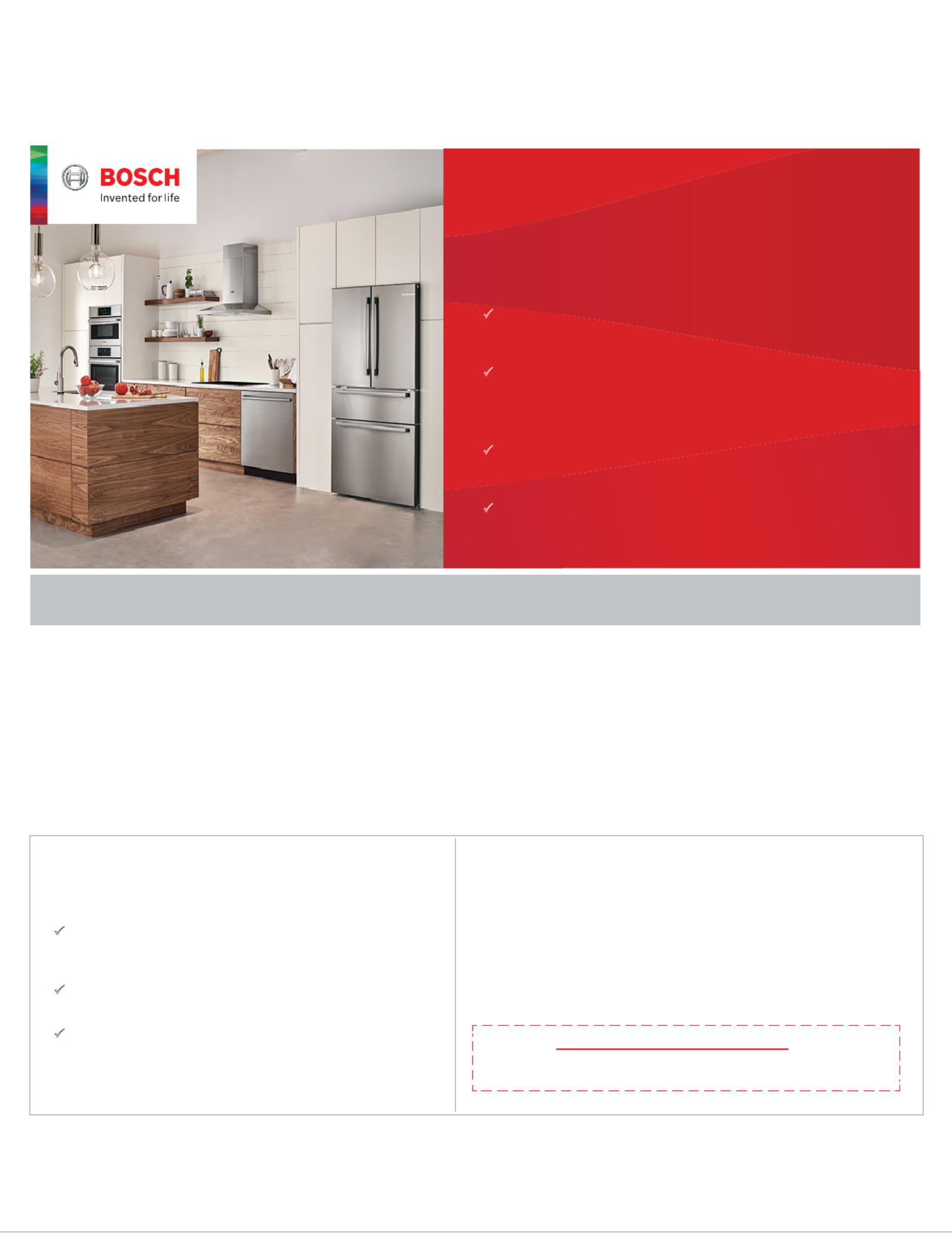 Buy any qualifying Bosch Kitchen Appliances 100, 300, 500, 800 and Benchmark Series and receive a rebate issued