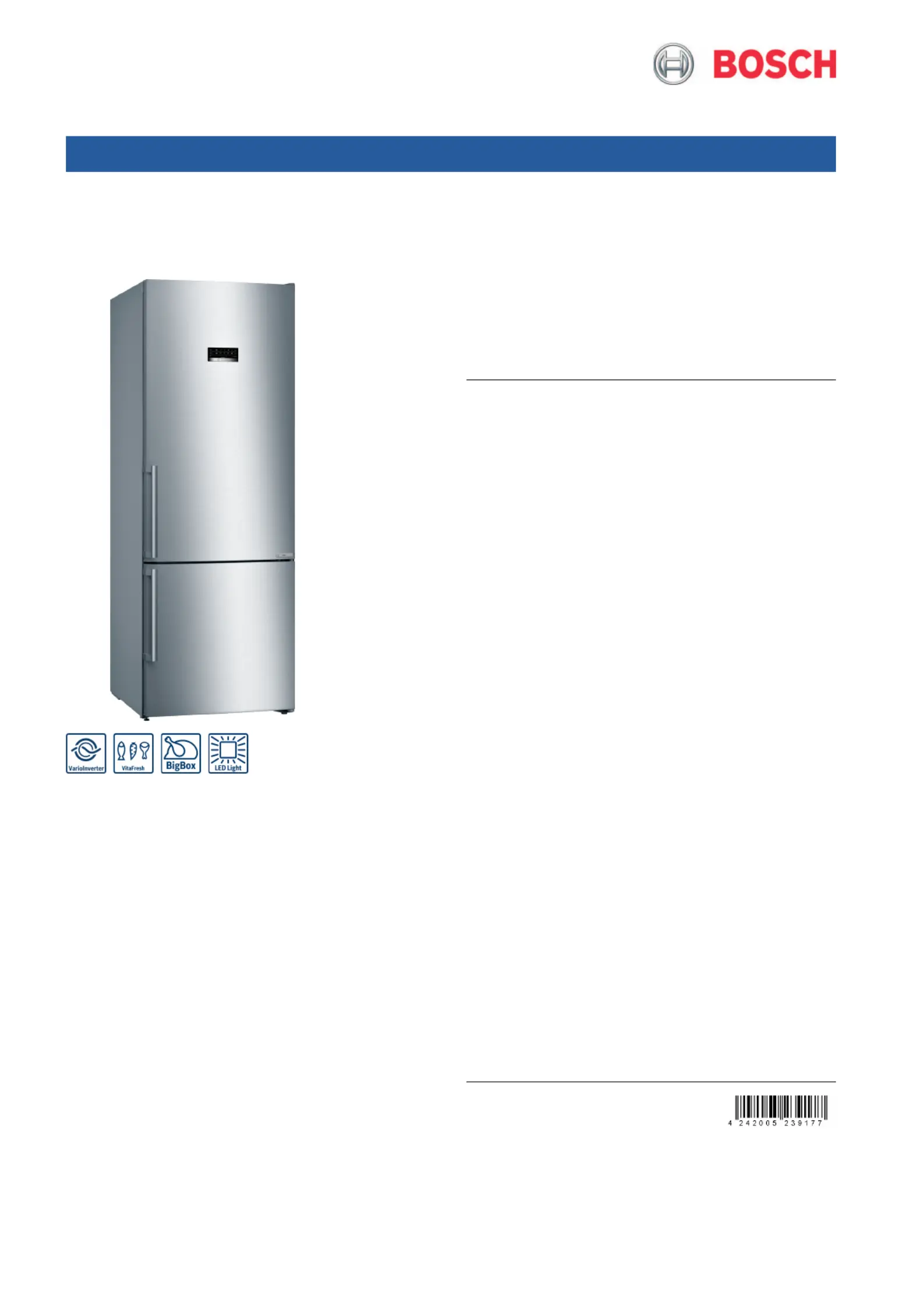 Her er Bosch KGN56XI4MO (Køleskab) brugervejledning. 3 sider på sprog Engelsk med en vægt på 579,617.0 Mb. Hvis du ikke kan finde svar på dit problem Spørg vores community.