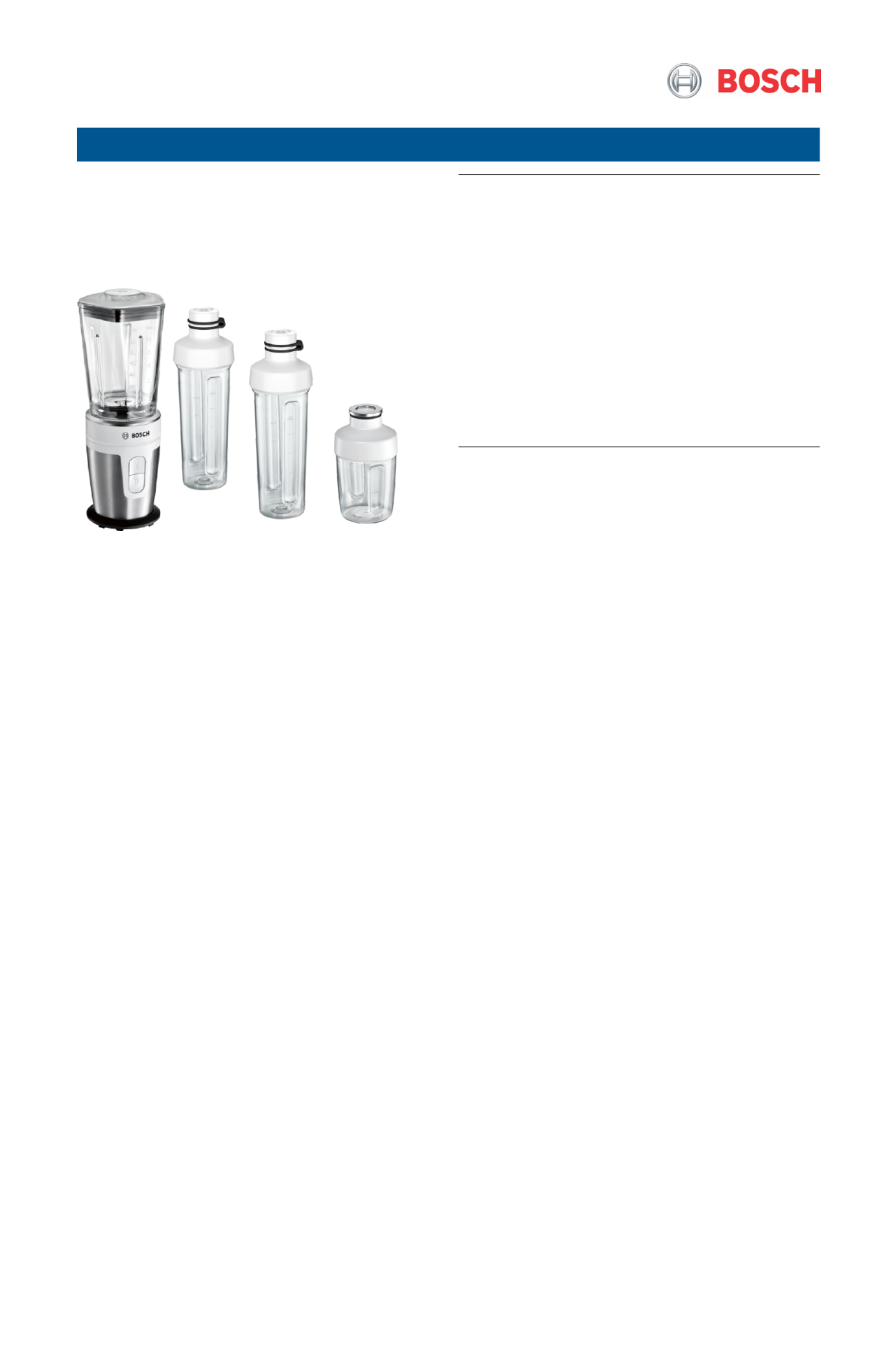 Her er Bosch MMBM7G4MGB (Blender) brugervejledning. 2 sider på sprog Engelsk med en vægt på 0.2 Mb. Hvis du ikke kan finde svar på dit problem Spørg vores community.