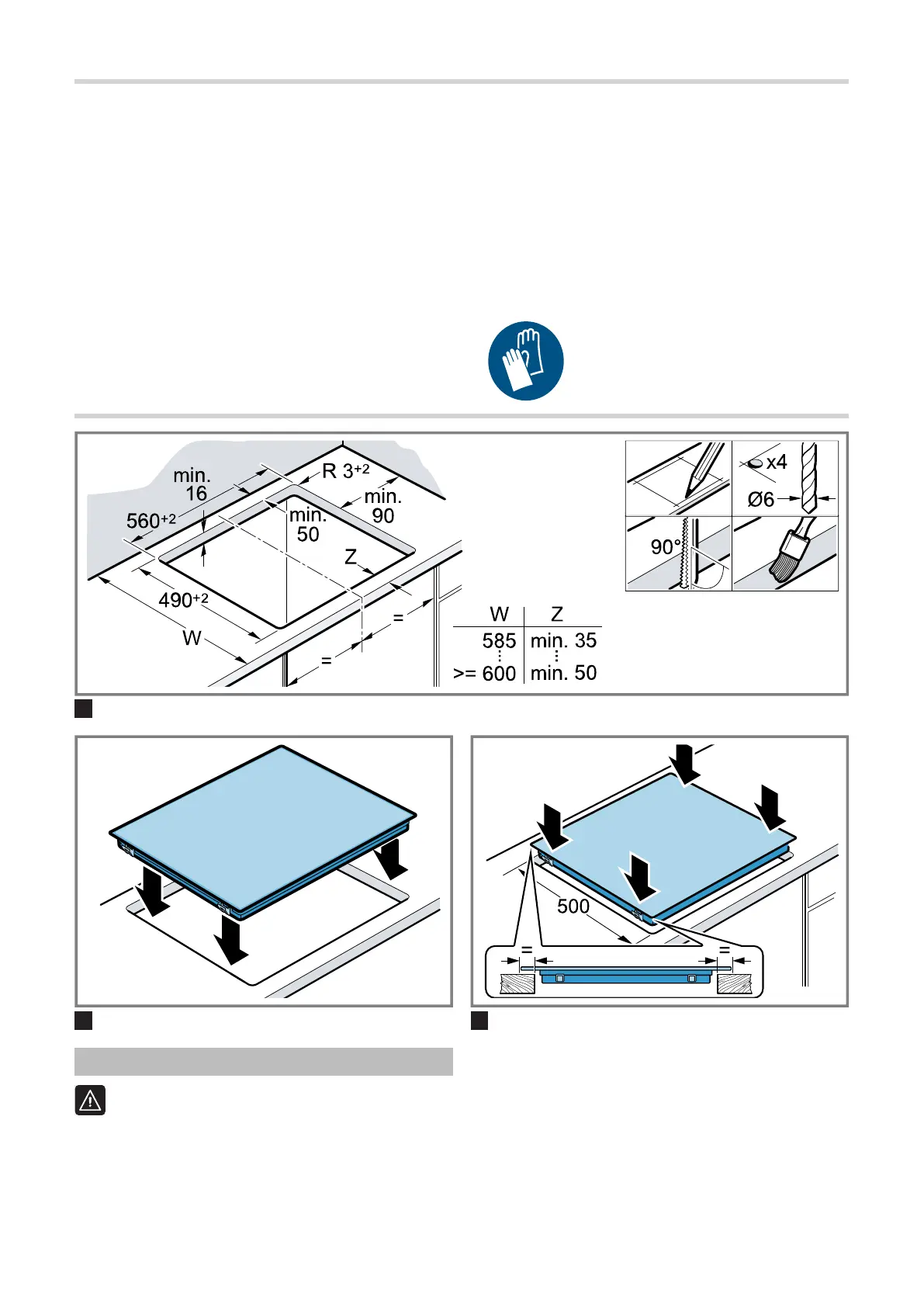 die Arbeitsplattendicke mindestens 40mm betra-