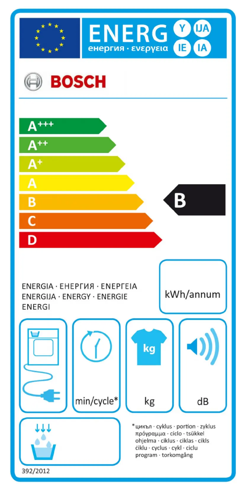 | Energieffektivitetsskala: | A+++ til D |