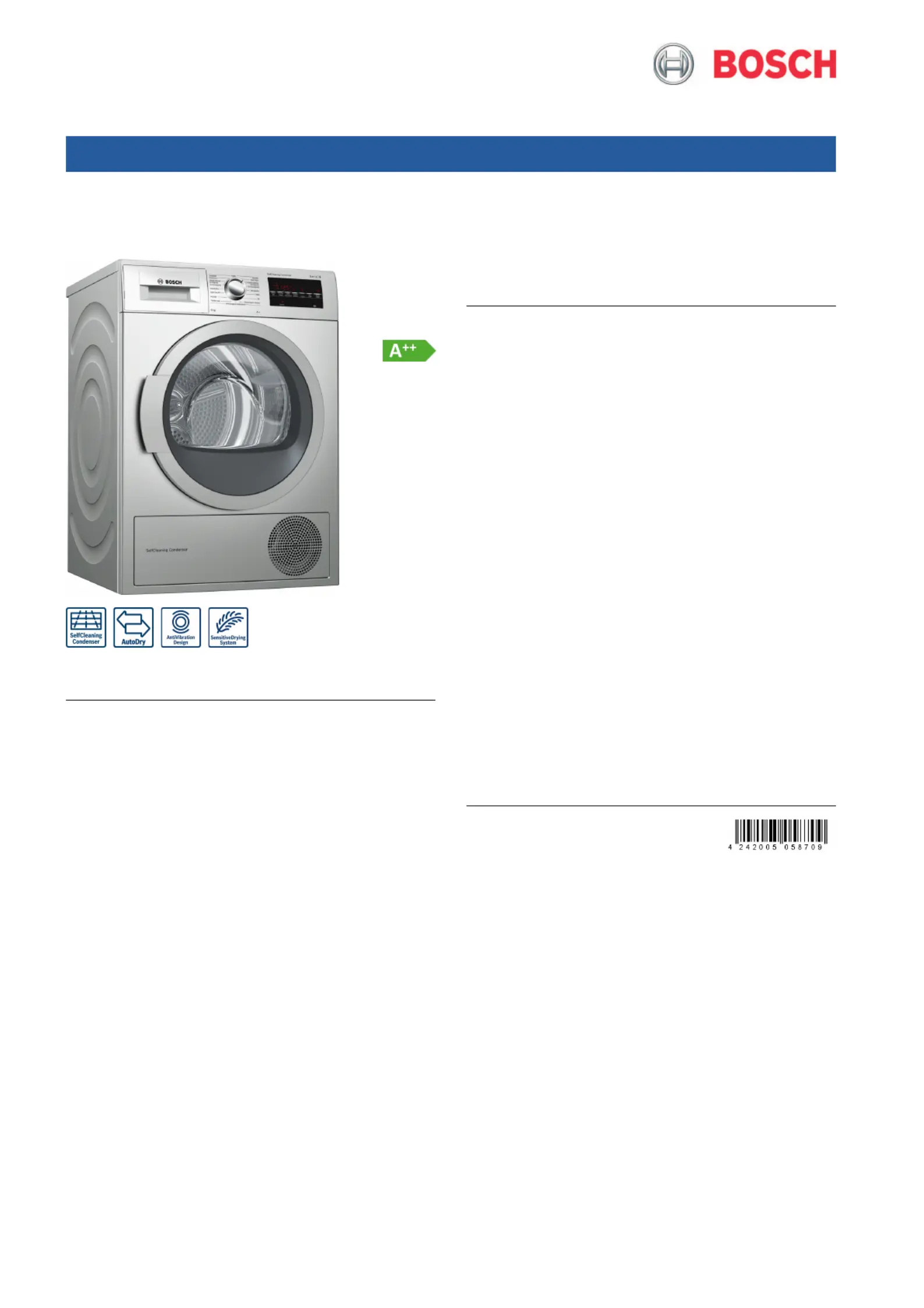 Her er Bosch WTW8546STR (Tørretumbler) brugervejledning. 2 sider på sprog med en vægt på 449,732.0 Mb. Hvis du ikke kan finde svar på dit problem Spørg vores community.