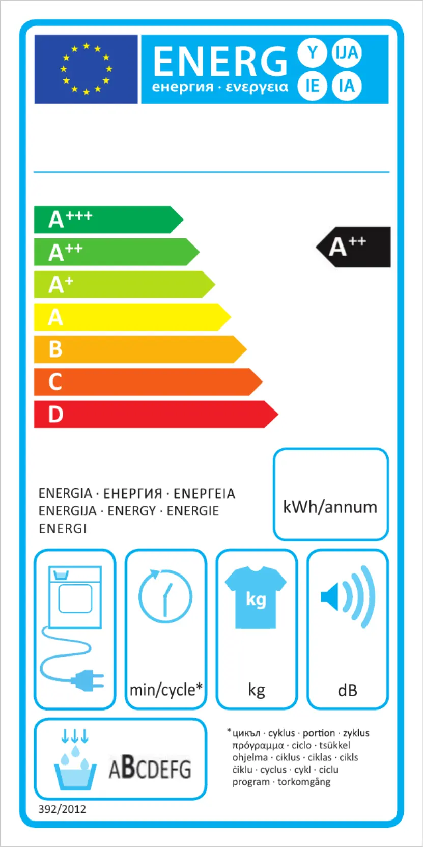 | Energieffektivitetsskala: | A+++ til D |
