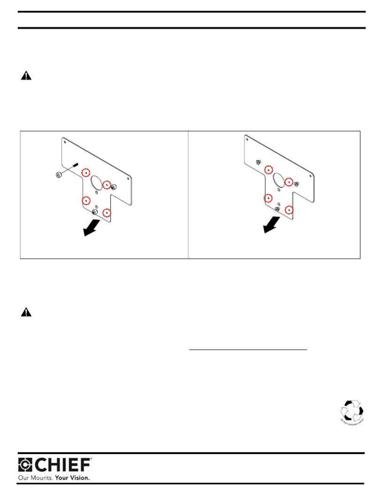 DAMAGE TO EQUIPMENT! DO NOT substitute hardware. Use only hardware supplied by manufacturer!