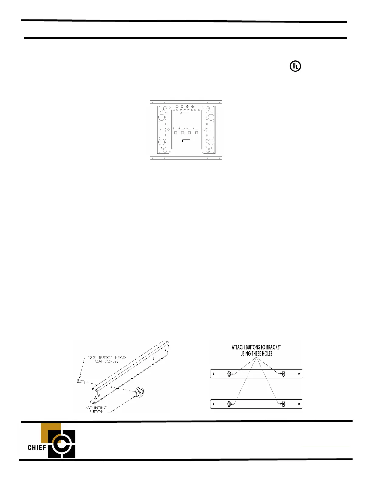 1. Using a 10-24 button head cap screw inserted from back side of bracket, secure mounting button, with