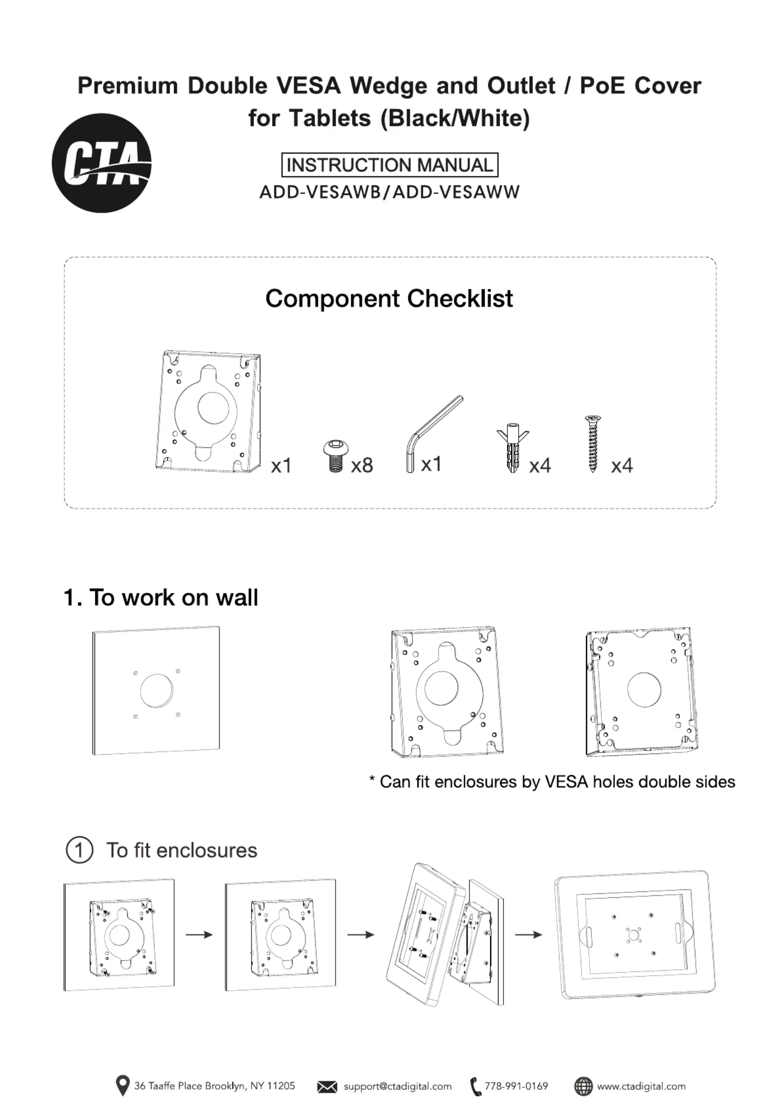 CTA Digital ADD-VESAWW Brugsanvisning