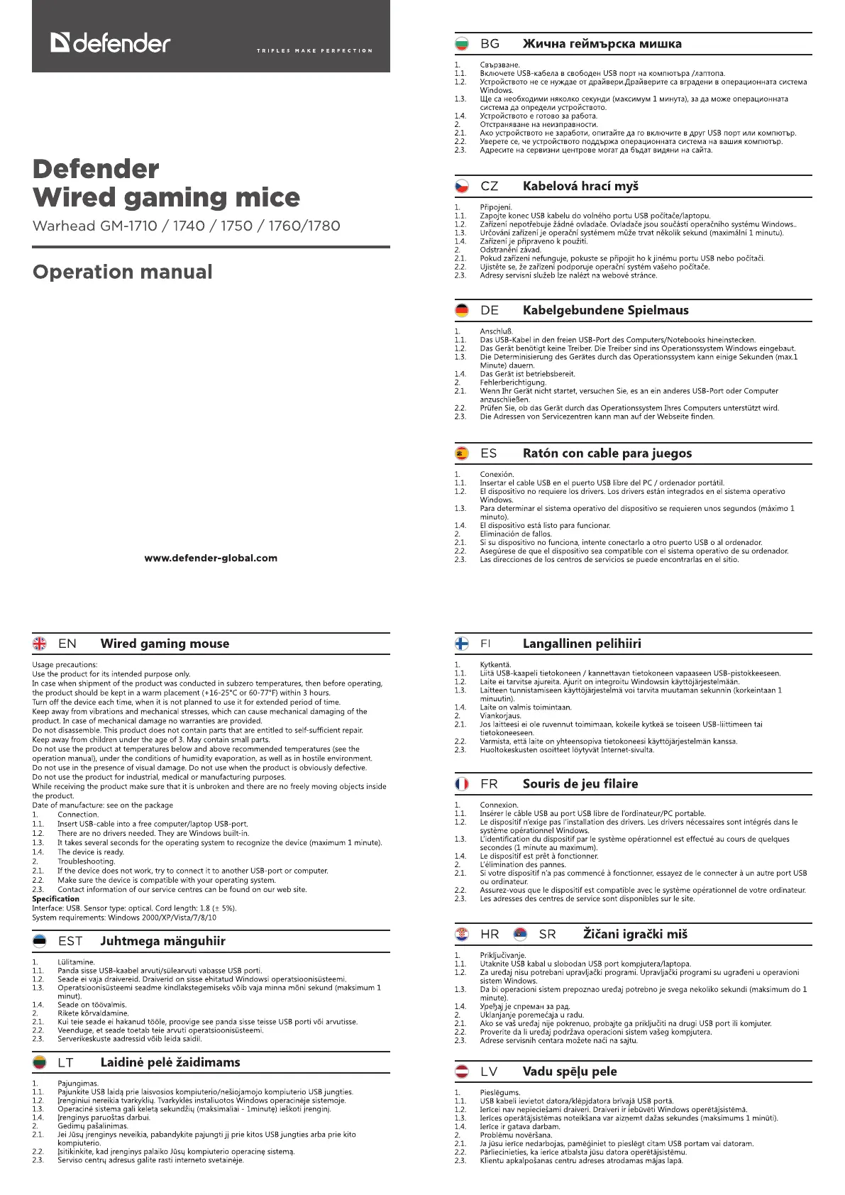 Her er Defender Warhead GM-1760 (mus) brugervejledning. 2 sider på sprog med en vægt på 528,420.0 Mb. Hvis du ikke kan finde svar på dit problem Spørg vores community.