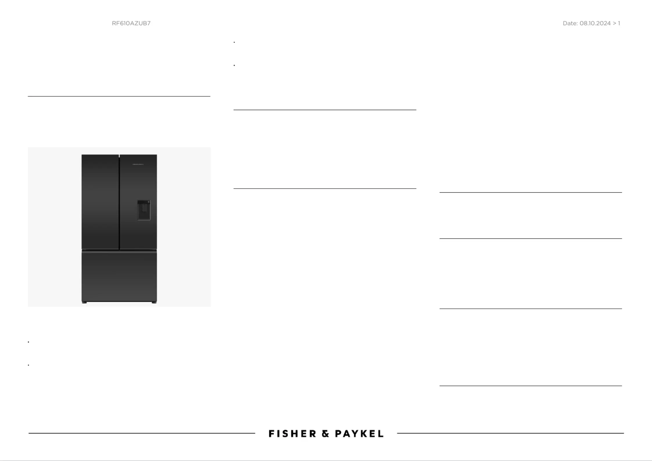 Her er Fisher & Paykel RF610AZUB7 (Køleskab) brugervejledning. 2 sider på sprog med en vægt på 240,278.0 Mb. Hvis du ikke kan finde svar på dit problem Spørg vores community.