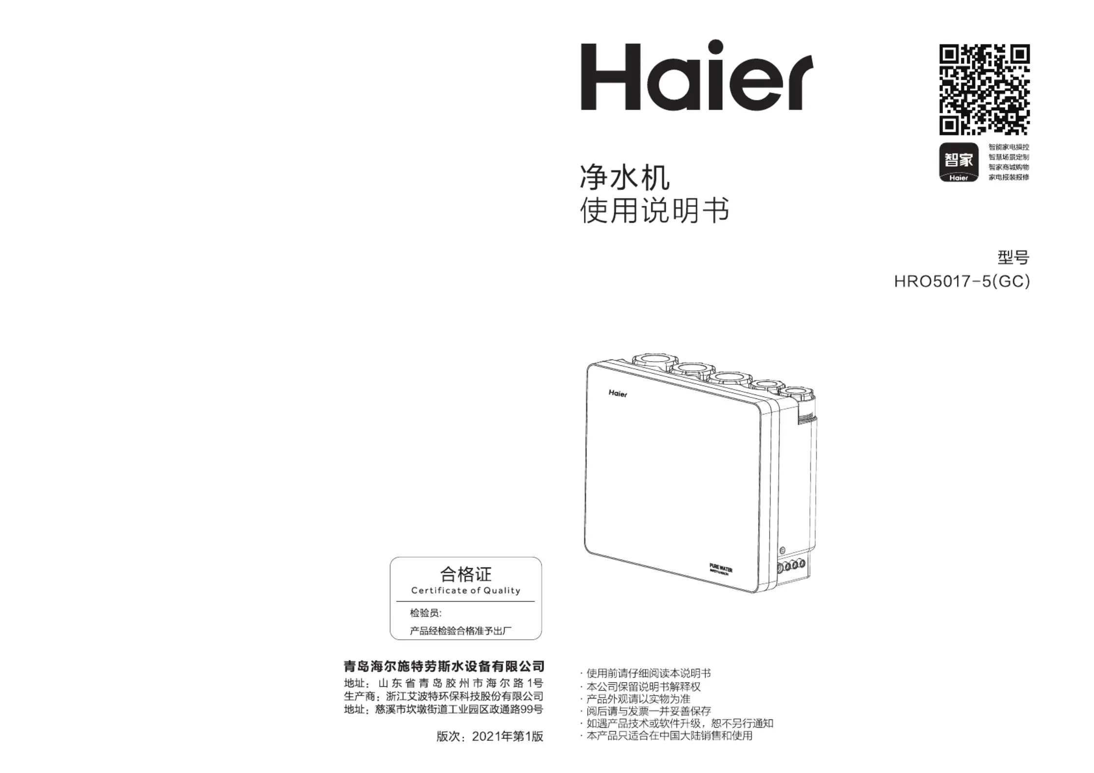 Her er Haier HRO5017-5(GC) (Vandfilter) brugervejledning. 10 sider på sprog med en vægt på 1,609,571.0 Mb. Hvis du ikke kan finde svar på dit problem Spørg vores community.