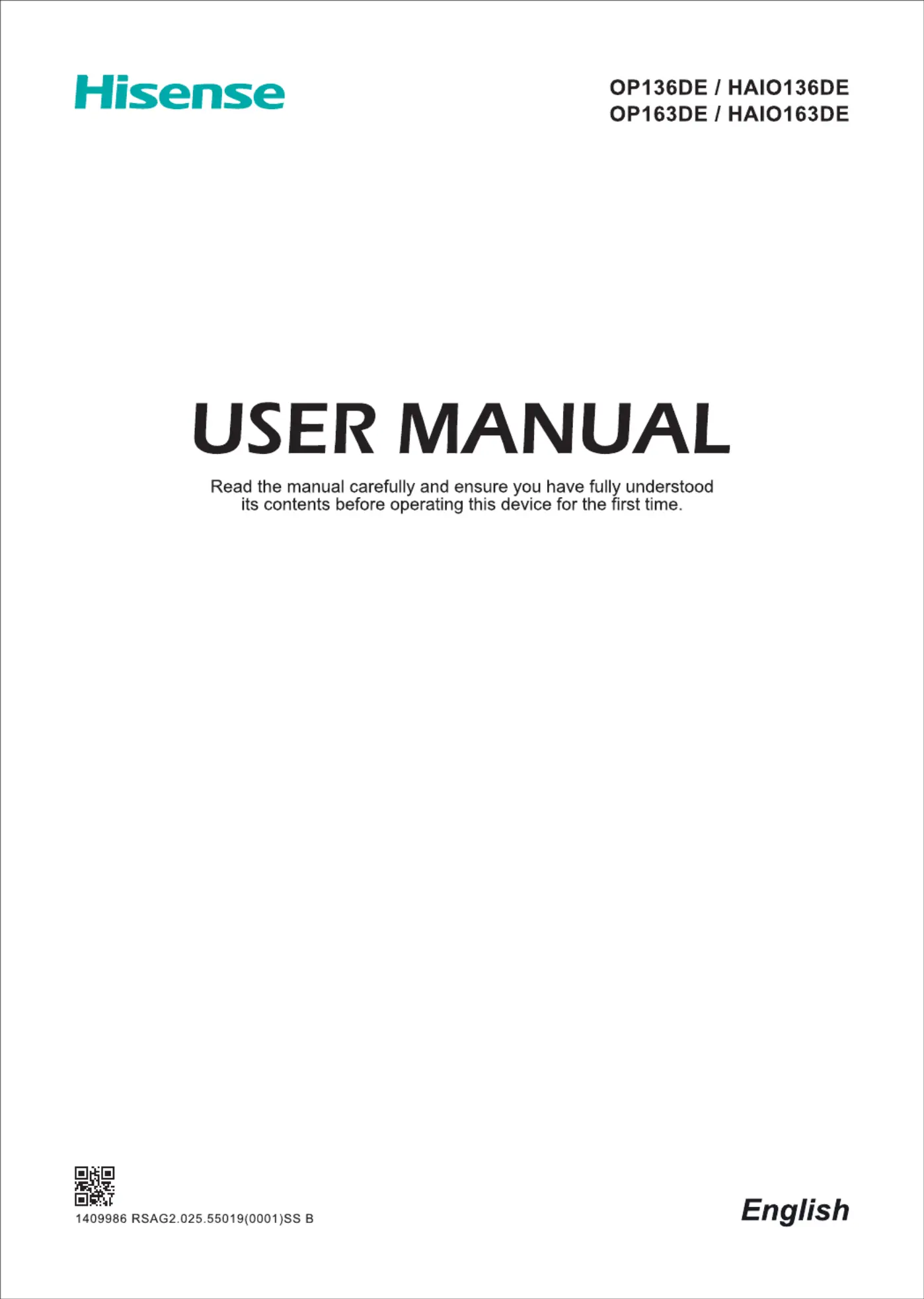 Hisense HAIO163DE Brugsanvisning
