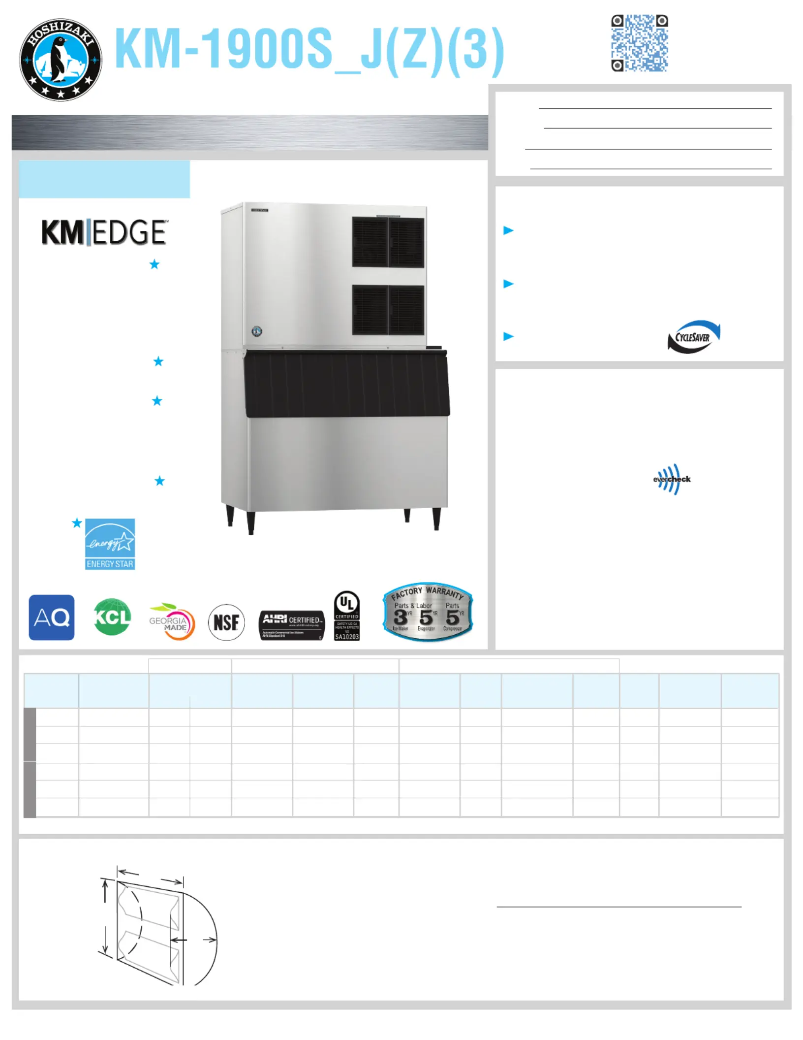 Hoshizaki reserves the right to change specifications without notice.