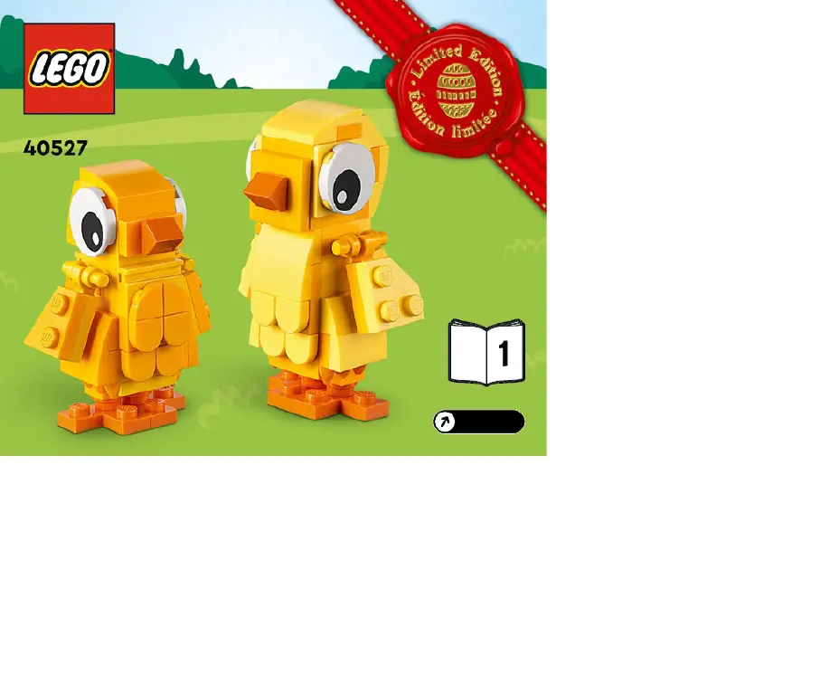 Her er Lego Easter Chicks 40527 (Legetøj) brugervejledning. 44 sider på sprog Almindelig med en vægt på 4,788,085.0 Mb. Hvis du ikke kan finde svar på dit problem Spørg vores community.