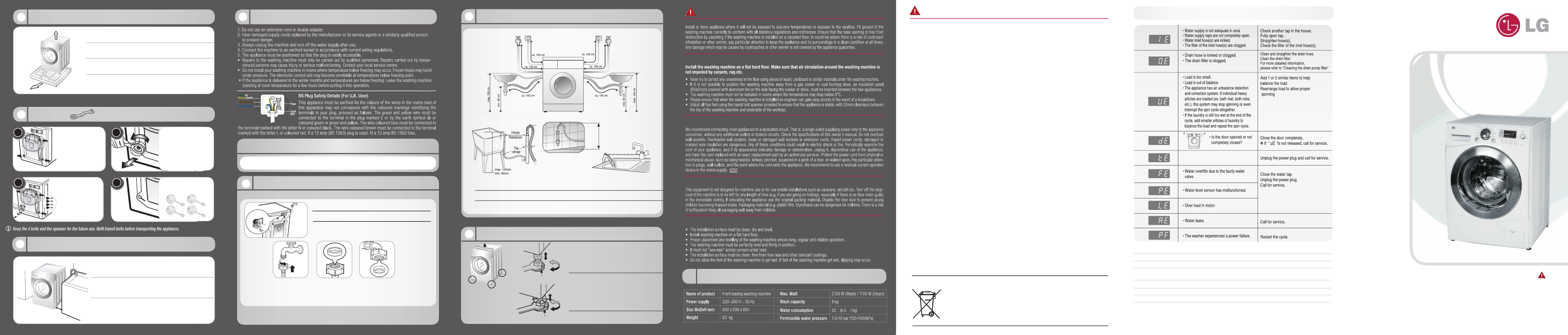 Please ensure that when the washing machine is installed an engineer can gain easy access in the event of a breakdown.