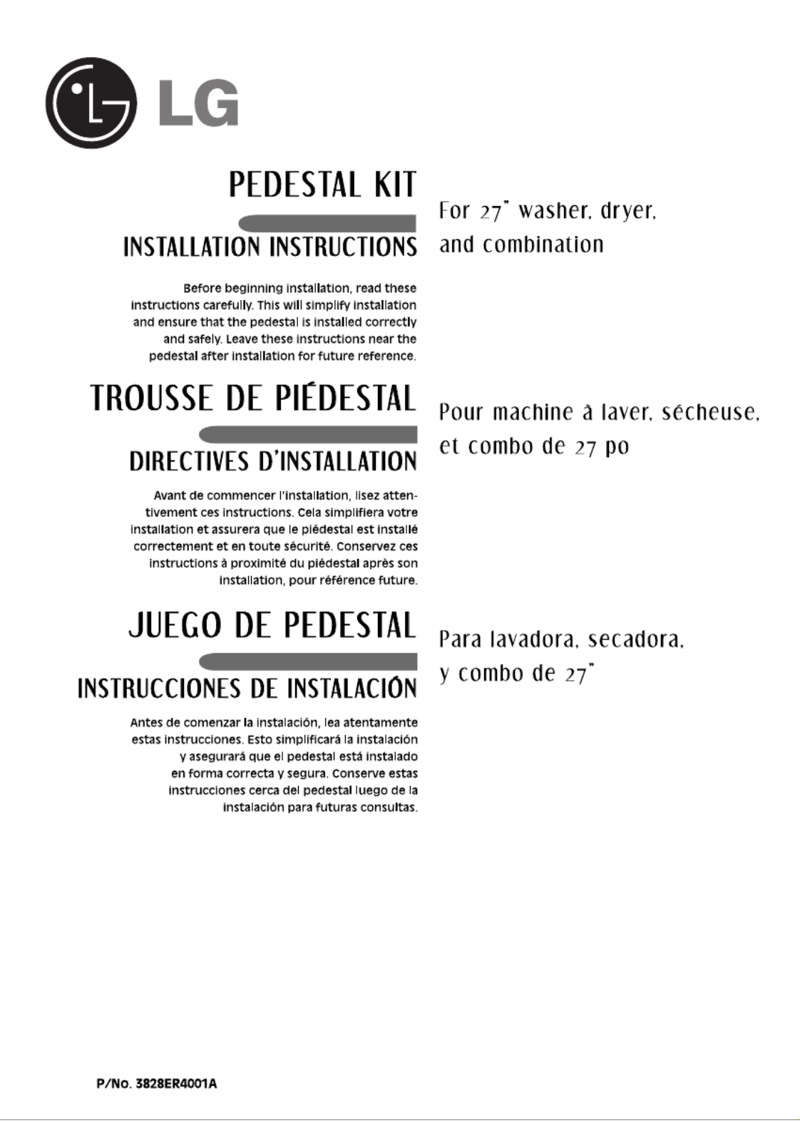 Her er LG WDP3L (Ikke kategoriseret) brugervejledning. 20 sider på sprog Engelsk med en vægt på 1.7 Mb. Hvis du ikke kan finde svar på dit problem Spørg vores community.