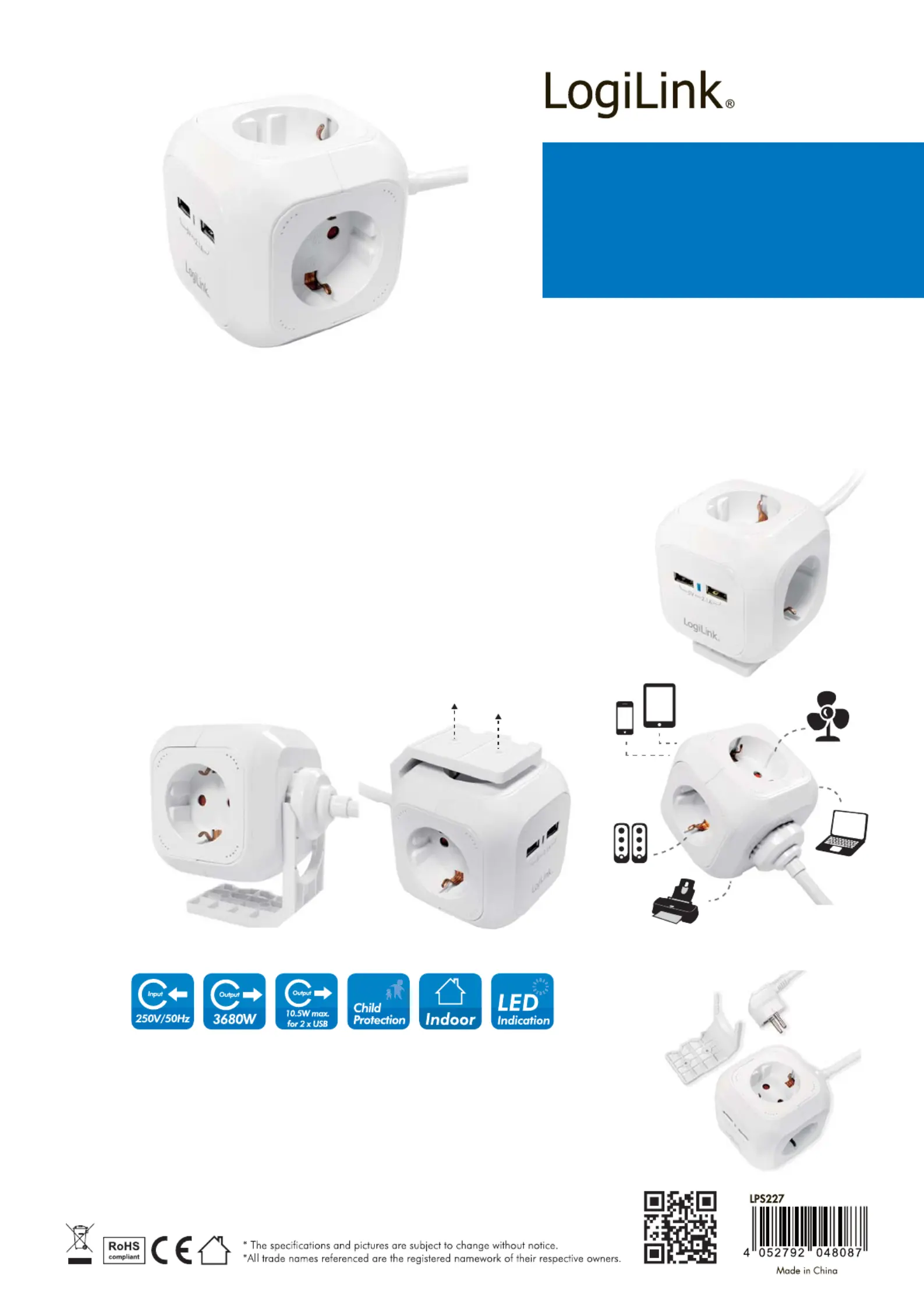 Her er LogiLink LPS227 (Ikke kategoriseret) brugervejledning. 1 sider på sprog med en vægt på 419,803.0 Mb. Hvis du ikke kan finde svar på dit problem Spørg vores community.