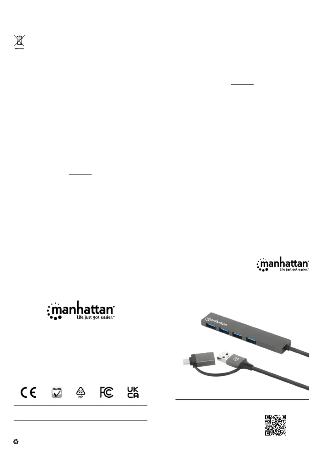 Her er Manhattan 181006 (USB HUB) brugervejledning. 2 sider på sprog Engelsk med en vægt på 486,474.0 Mb. Hvis du ikke kan finde svar på dit problem Spørg vores community.