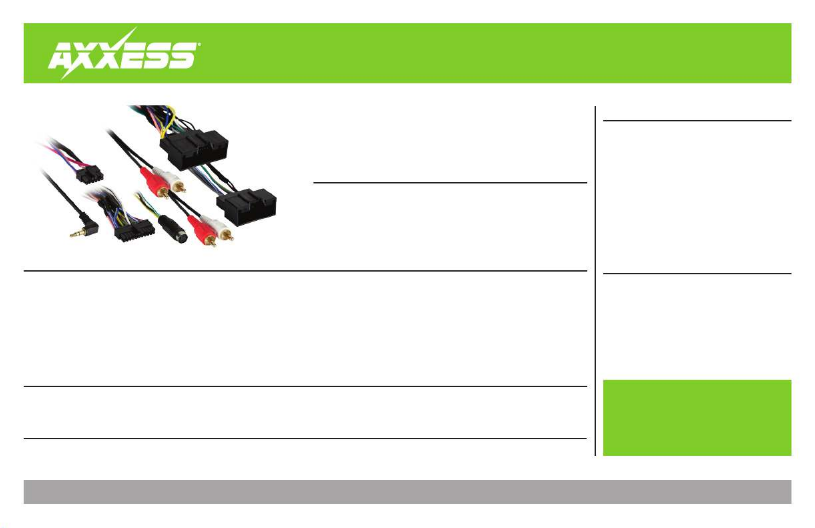 *Visit AxxessInterfaces.com for up-to-date vehicle specific applications.