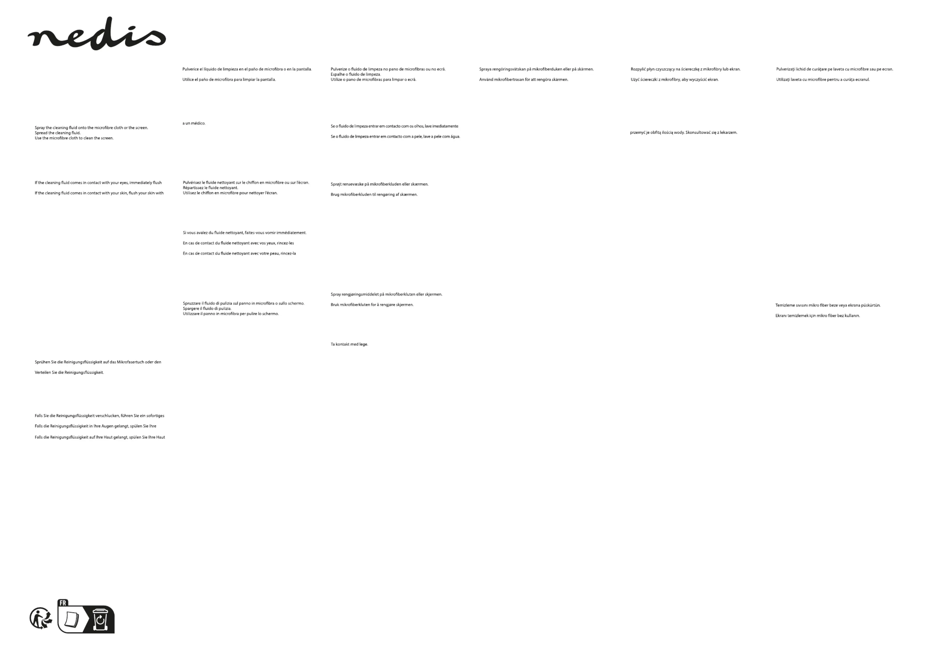 • Indien u de reinigingsvloeistof inslikt, wek dan onmiddellijk braken op.