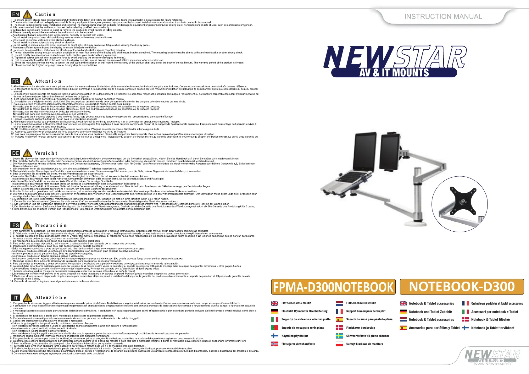 NewStar FPMA-D300NOTEBOOK Brugsanvisning