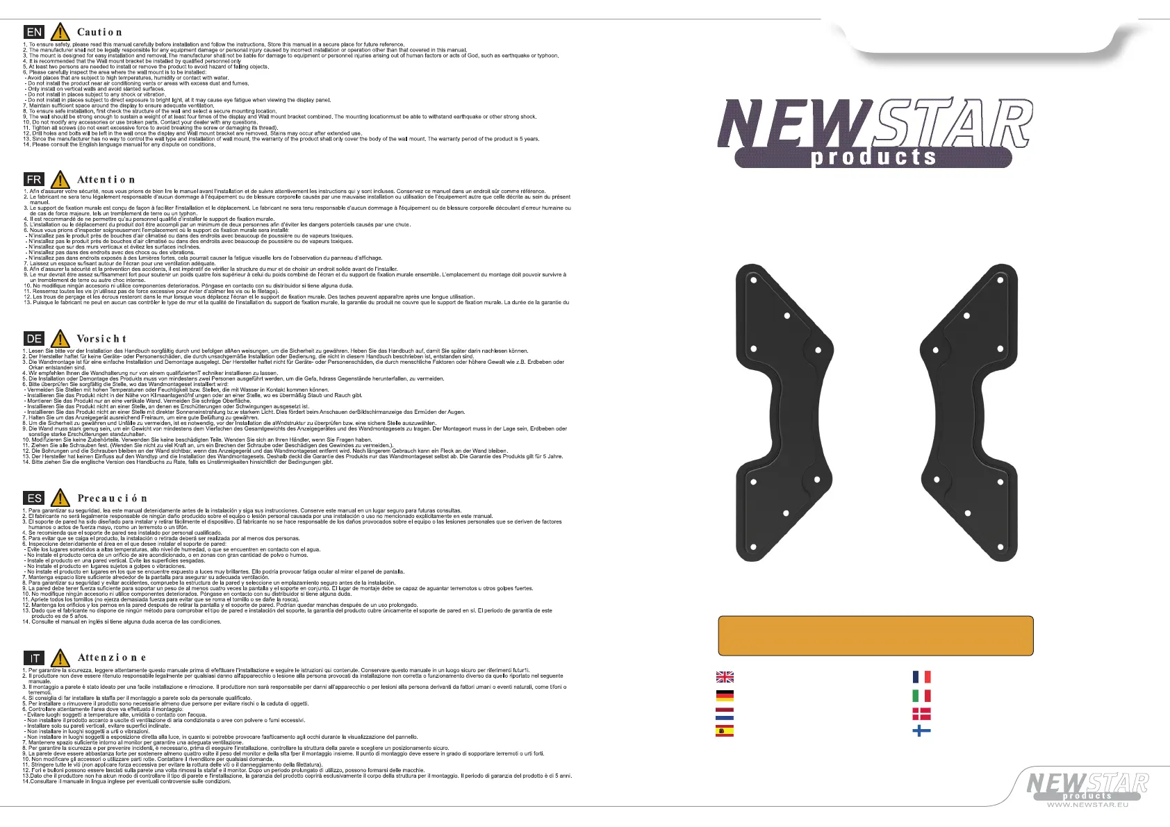 Her er NewStar FPMA-VESA440 (Vægbeslag) brugervejledning. 2 sider på sprog med en vægt på 601,840.0 Mb. Hvis du ikke kan finde svar på dit problem Spørg vores community.
