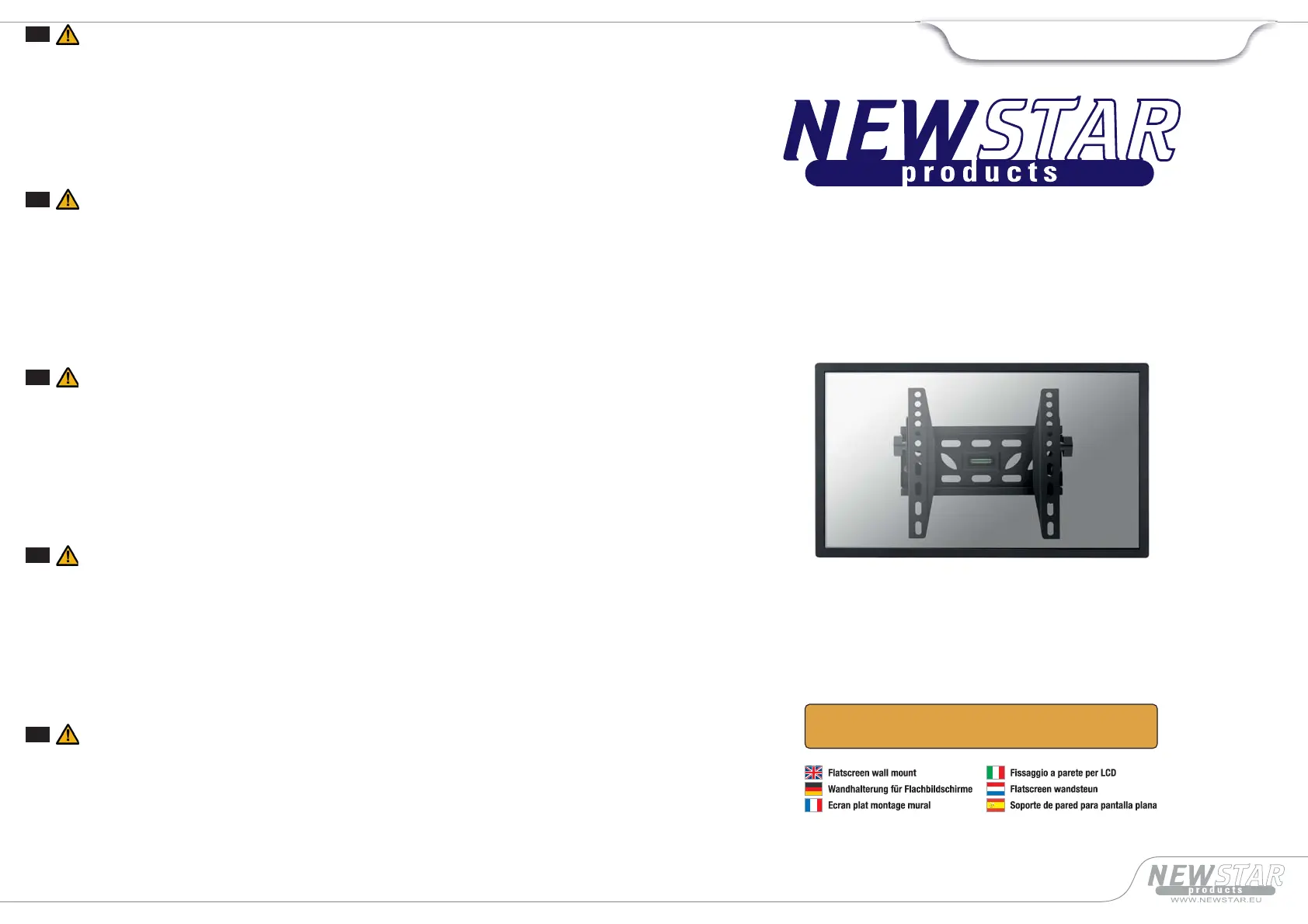 Her er NewStar LED-W220 (Flad panel støtte) brugervejledning. 2 sider på sprog med en vægt på 591,208.0 Mb. Hvis du ikke kan finde svar på dit problem Spørg vores community.