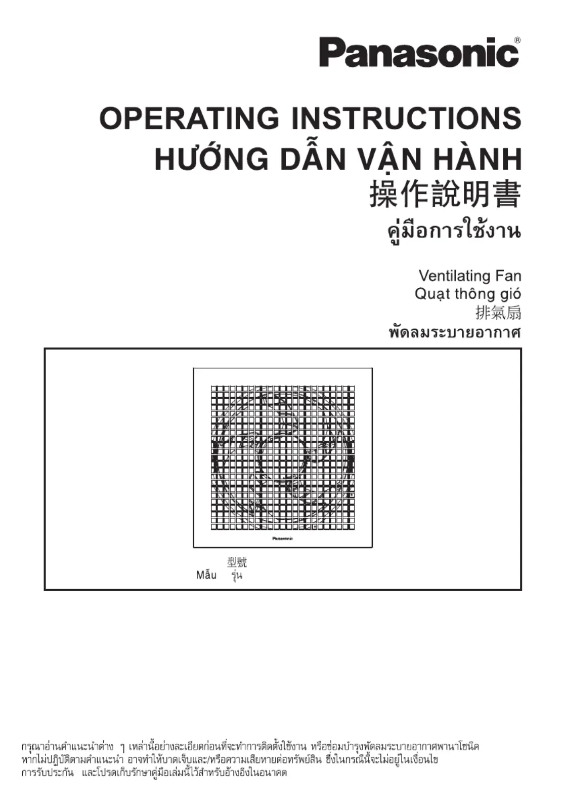 Trong trường hợp đó quạt sẽ không chấp nhận bảo hành. Vui lòng giữ lại sổ tay này để tham khảo trong tương lai.