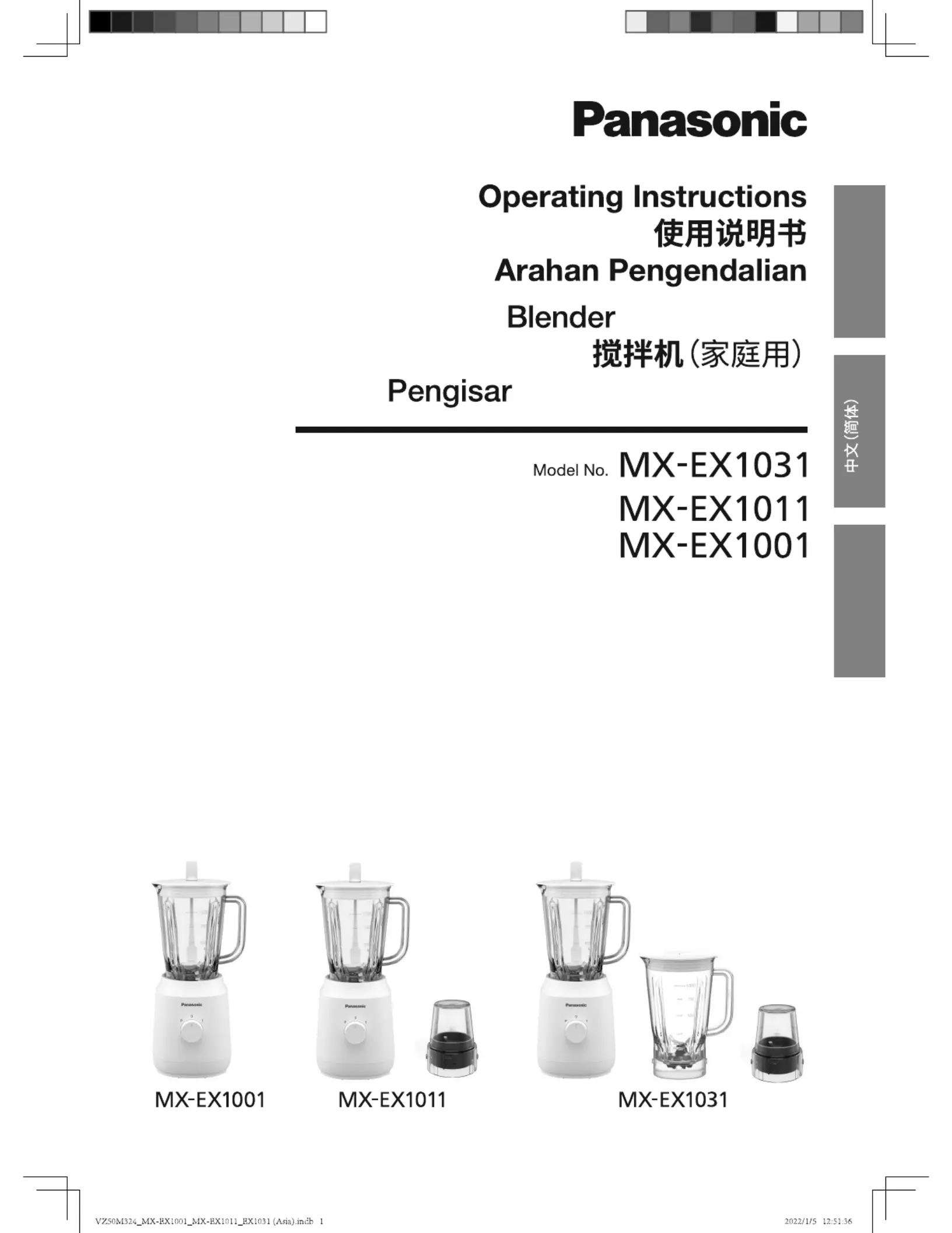 Her er Panasonic MX-EX1031 (Blender) brugervejledning. 23 sider på sprog med en vægt på 3,705,224.0 Mb. Hvis du ikke kan finde svar på dit problem Spørg vores community.