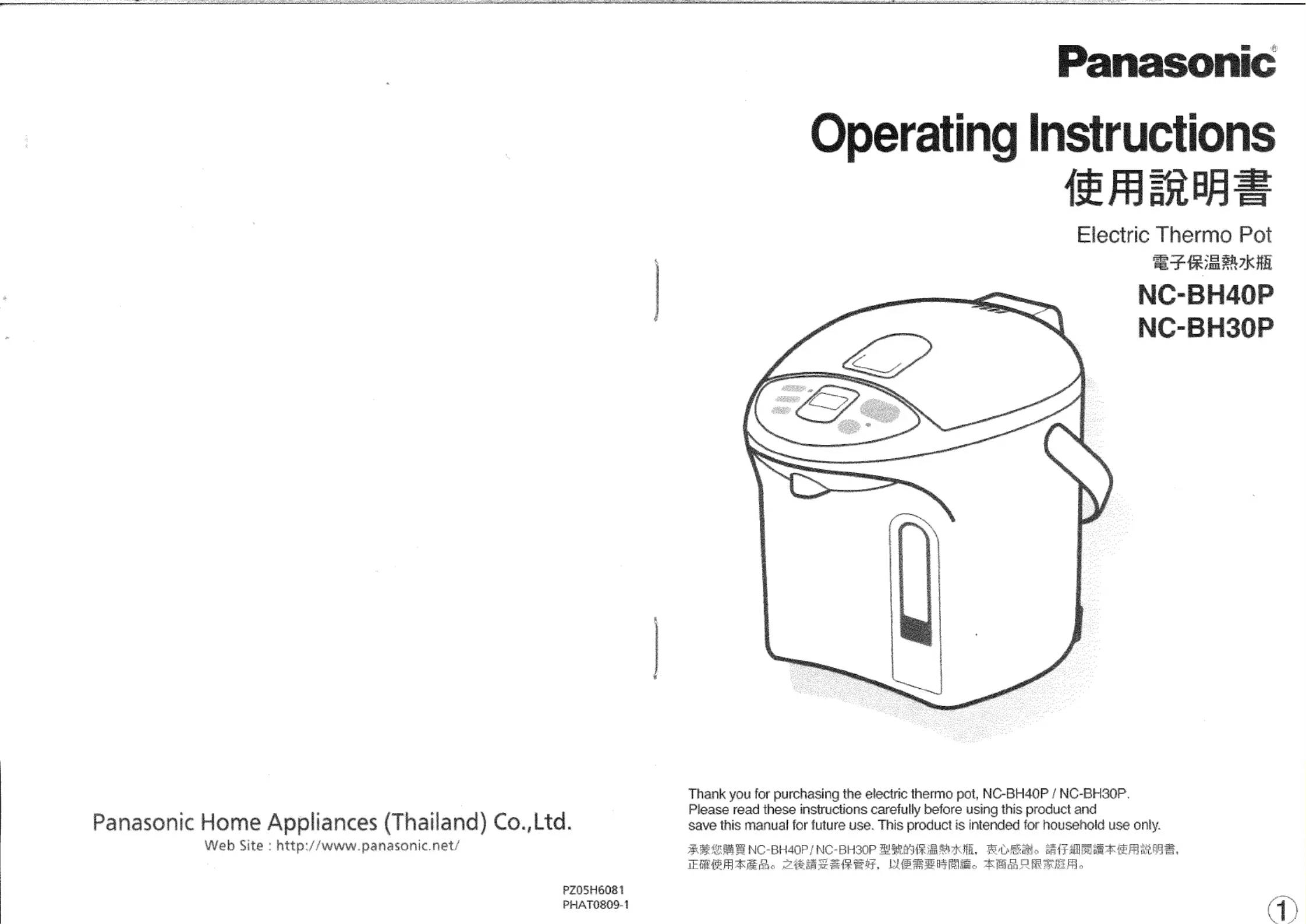 Her er Panasonic NC-BH40P (Termokande) brugervejledning. 9 sider på sprog med en vægt på 2,264,857.0 Mb. Hvis du ikke kan finde svar på dit problem Spørg vores community.