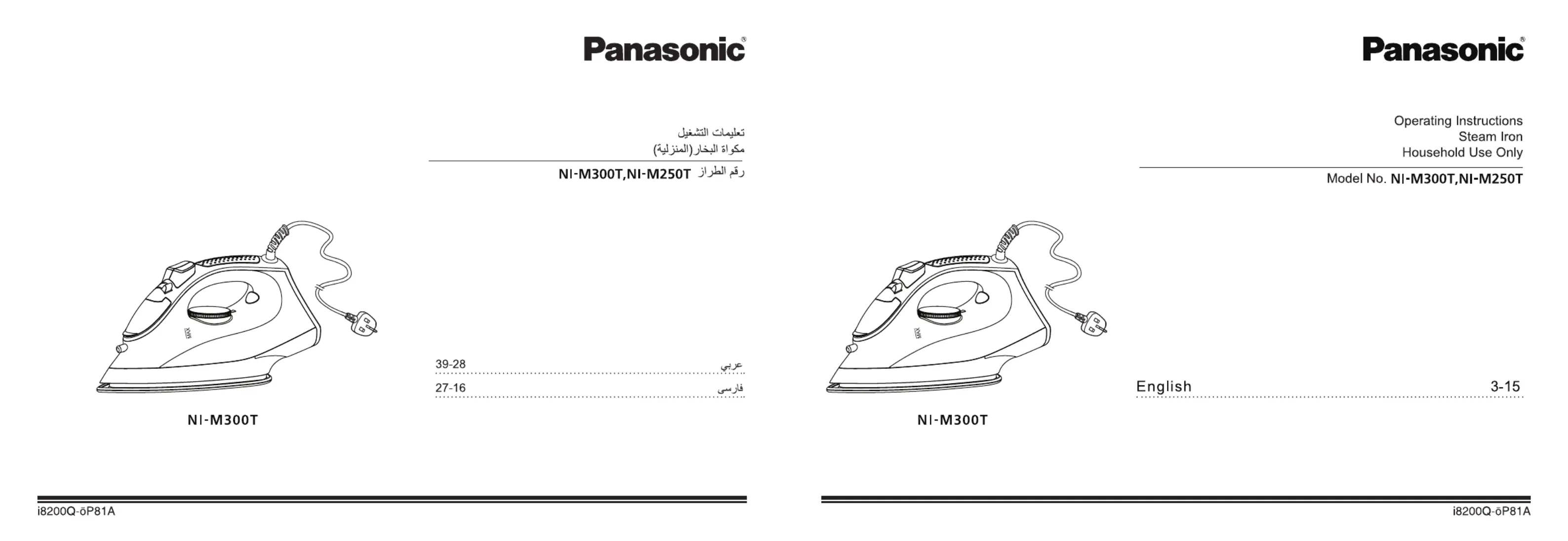Her er Panasonic NI-M250T (Jern) brugervejledning. 20 sider på sprog med en vægt på 3,552,007.0 Mb. Hvis du ikke kan finde svar på dit problem Spørg vores community.