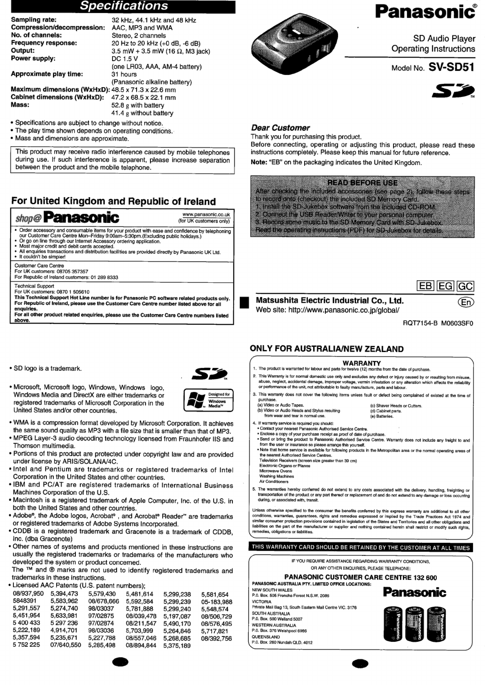 Panasonic SV-SD51 Brugsanvisning