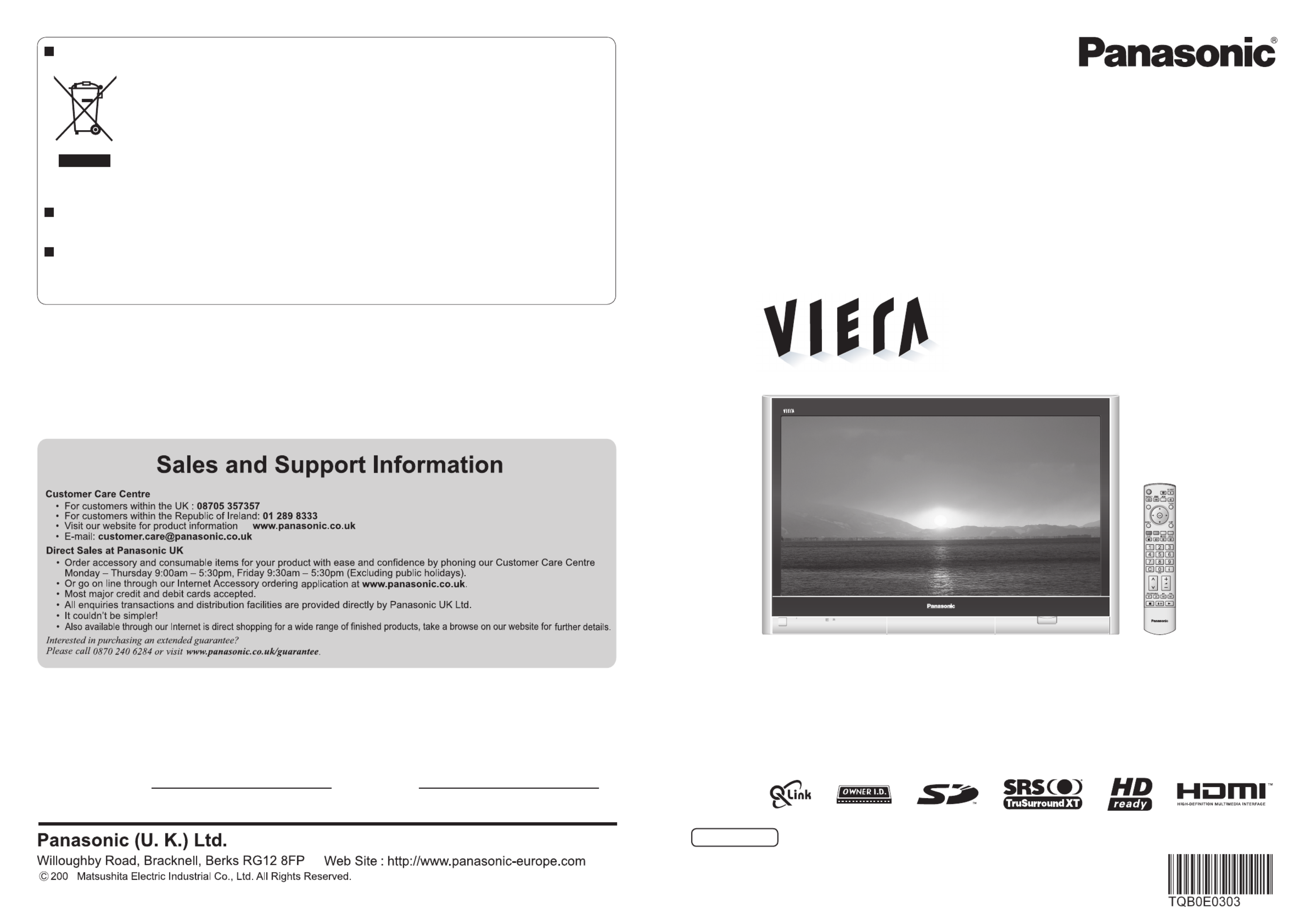 Her er Panasonic Viera TH-50PV600EY (TV) brugervejledning. 22 sider på sprog Engelsk med en vægt på 7.1 Mb. Hvis du ikke kan finde svar på dit problem Spørg vores community.