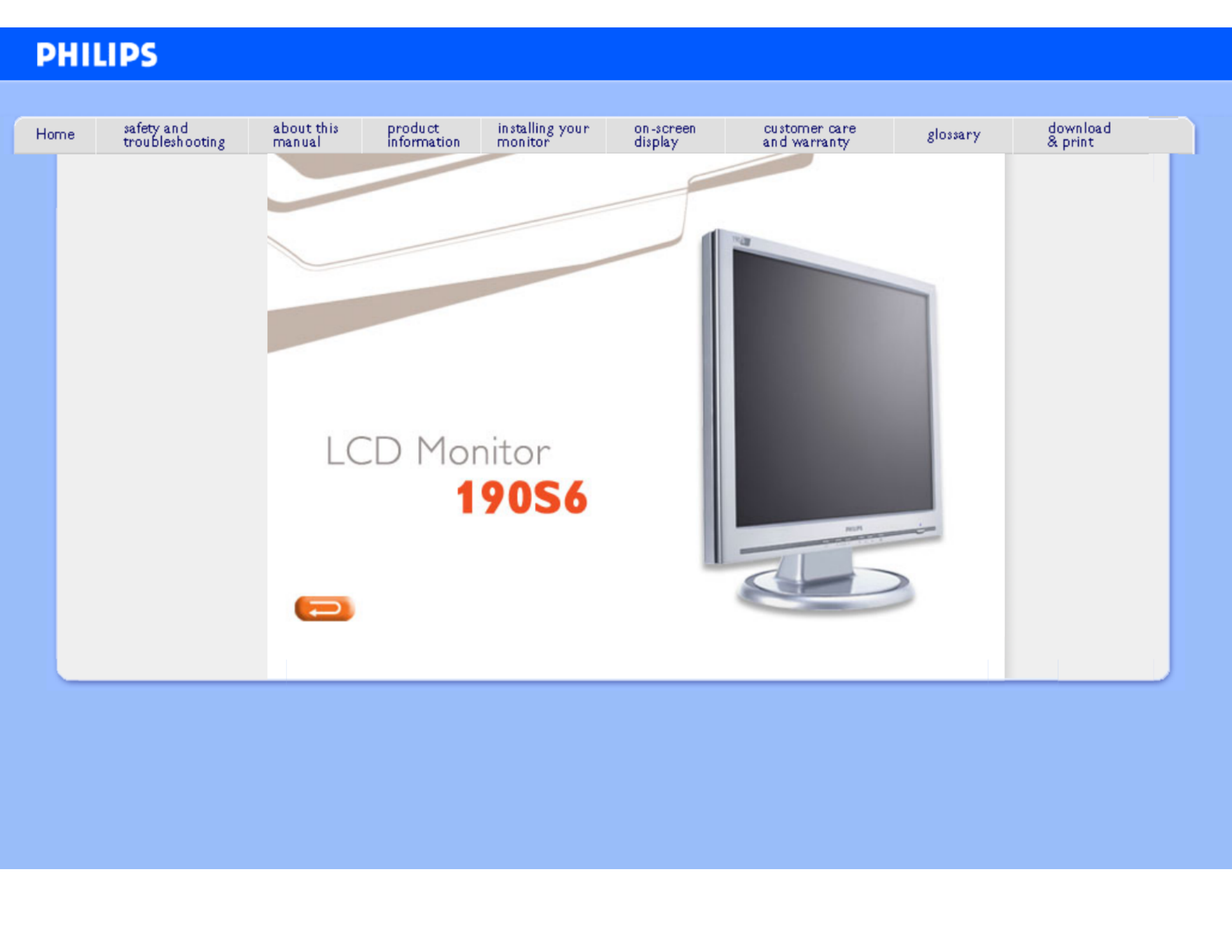 Her er Philips 190S6 (Skærm) brugervejledning. 97 sider på sprog Engelsk med en vægt på 10.4 Mb. Hvis du ikke kan finde svar på dit problem Spørg vores community.