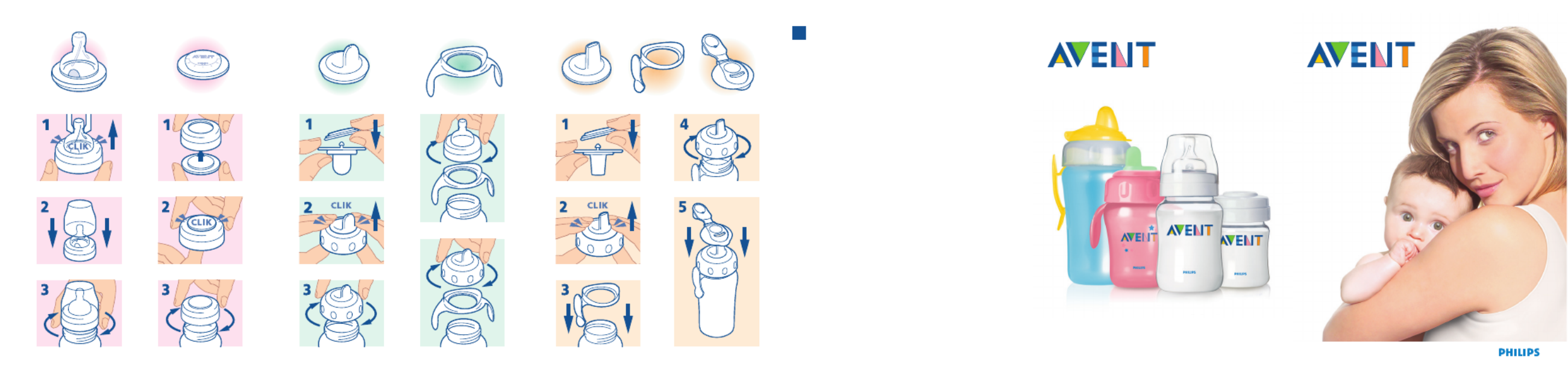 Spare teats and spouts with valves are available separately. Use only AVENT