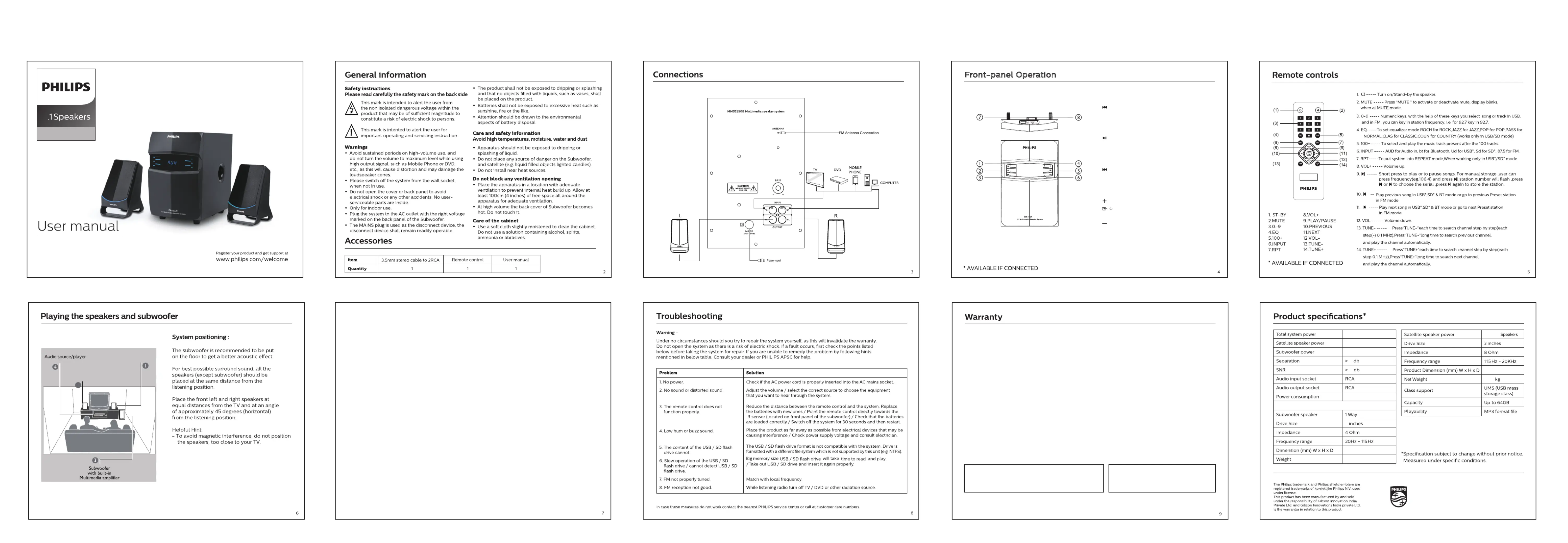 This Philips 2.1 Multimedia Speaker is warranted against any defect due to defective materials or workmanship for 12