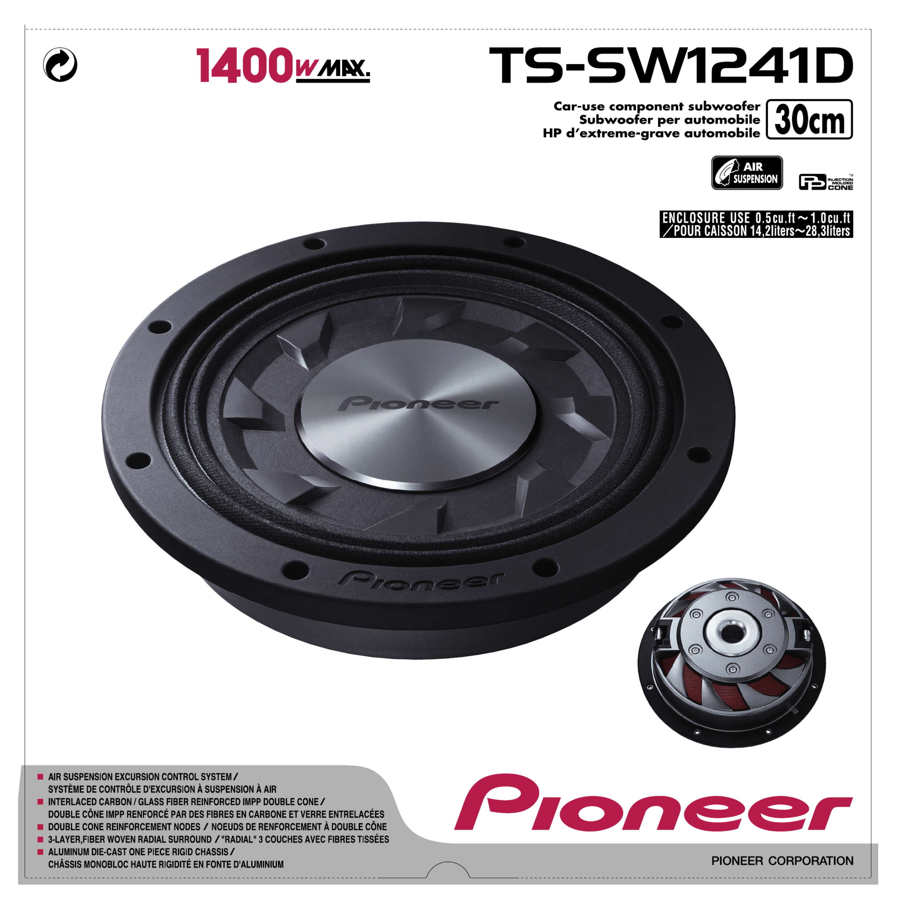 Her er Pioneer TS-SW1241D (Subwoofer) brugervejledning. 7 sider på sprog Engelsk med en vægt på 5.1 Mb. Hvis du ikke kan finde svar på dit problem Spørg vores community.