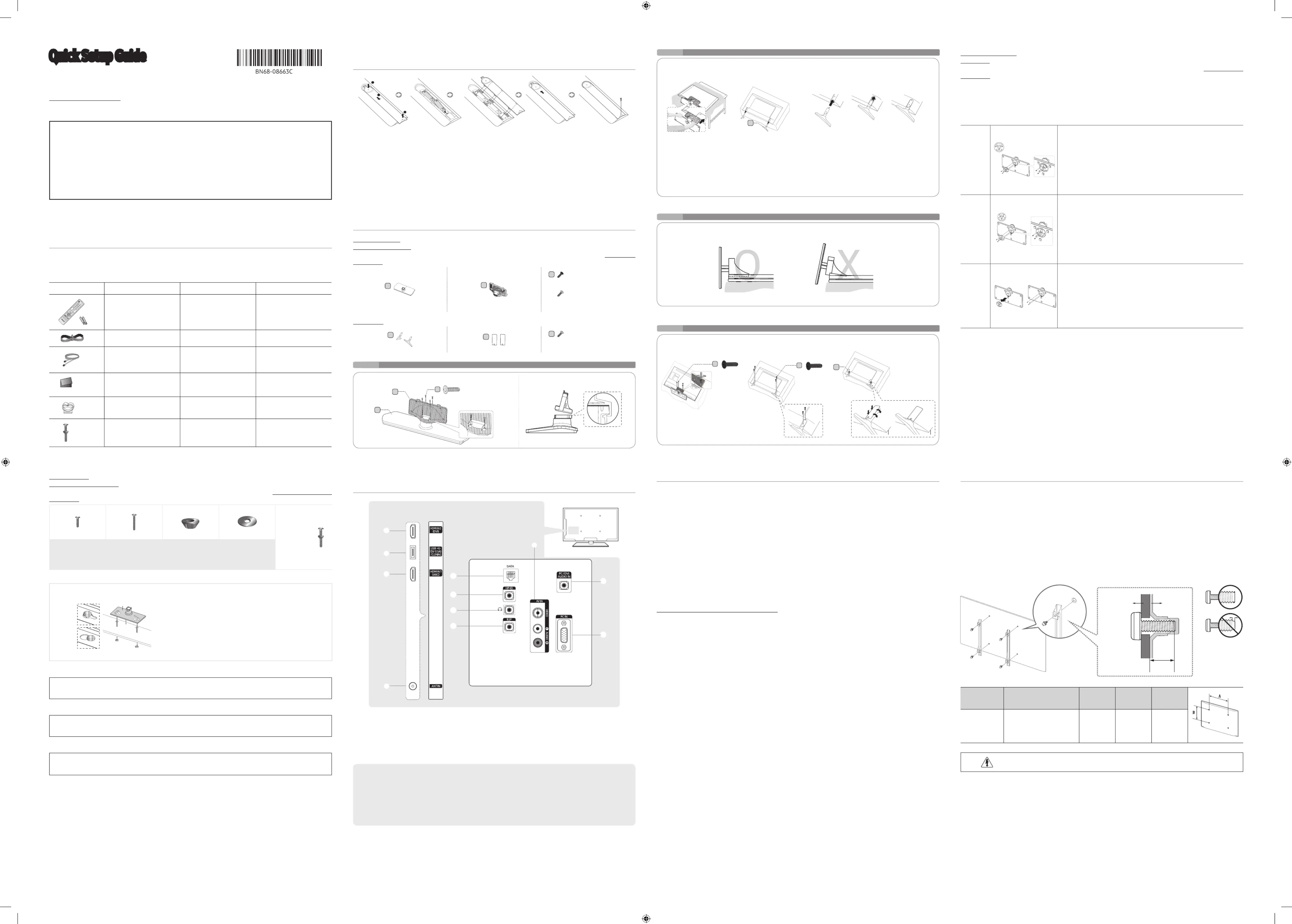 ➣Samsung is not liable for product damage or personal injury when a non-VESA or non-specied wall mount is used or the consumer fails to follow