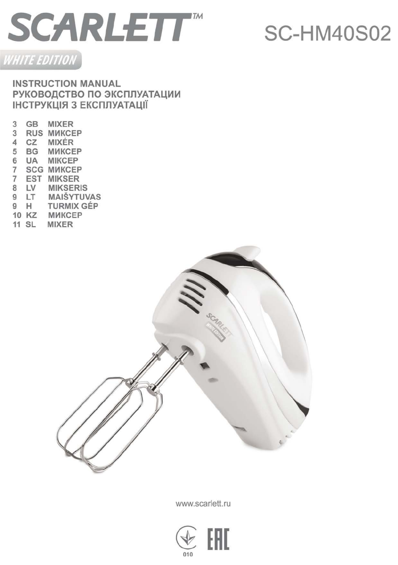Scarlett SC-HM40S02 Brugsanvisning