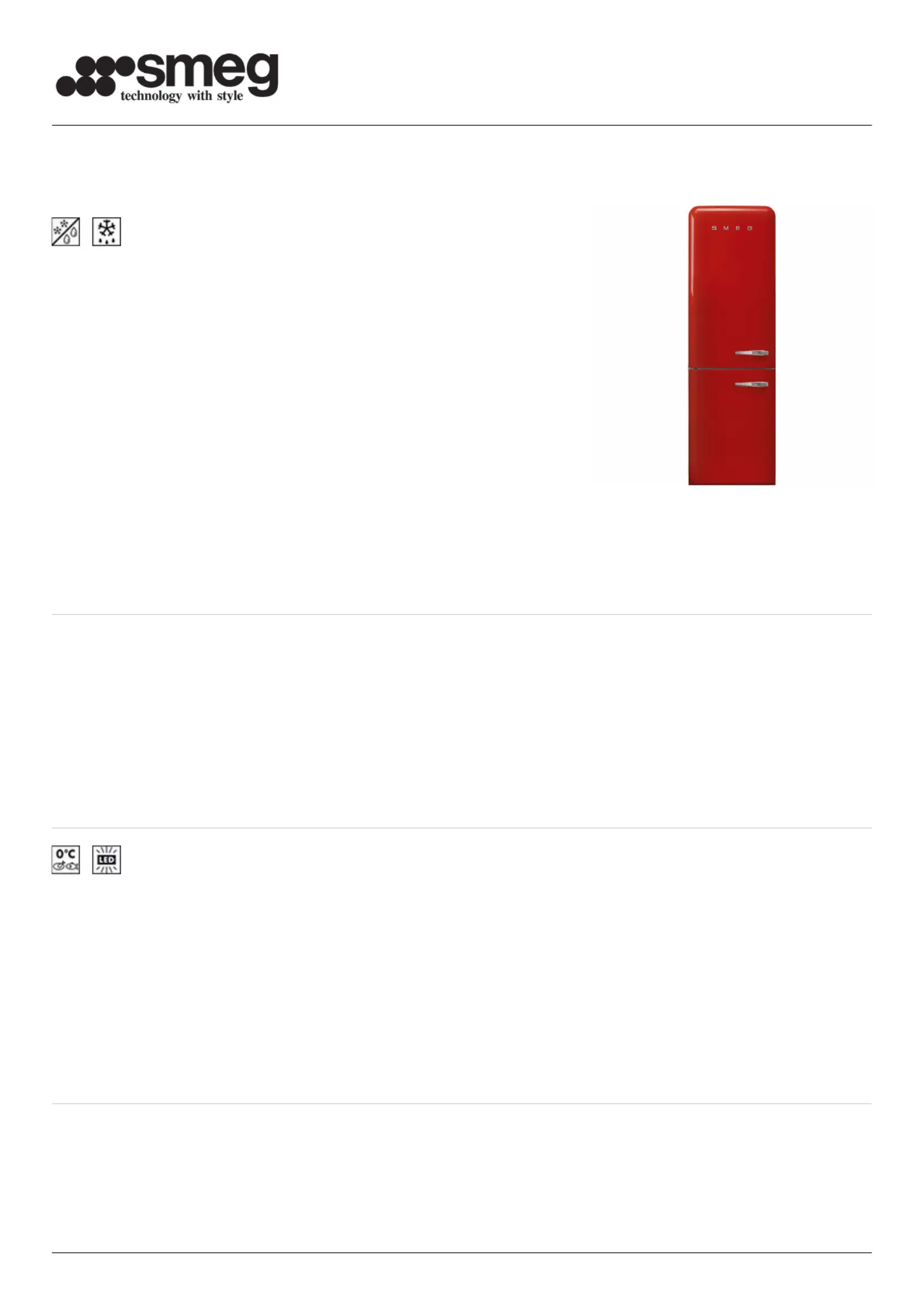 Her er Smeg FAB32ULRD3 (Køleskab) brugervejledning. 4 sider på sprog med en vægt på 505,714.0 Mb. Hvis du ikke kan finde svar på dit problem Spørg vores community.